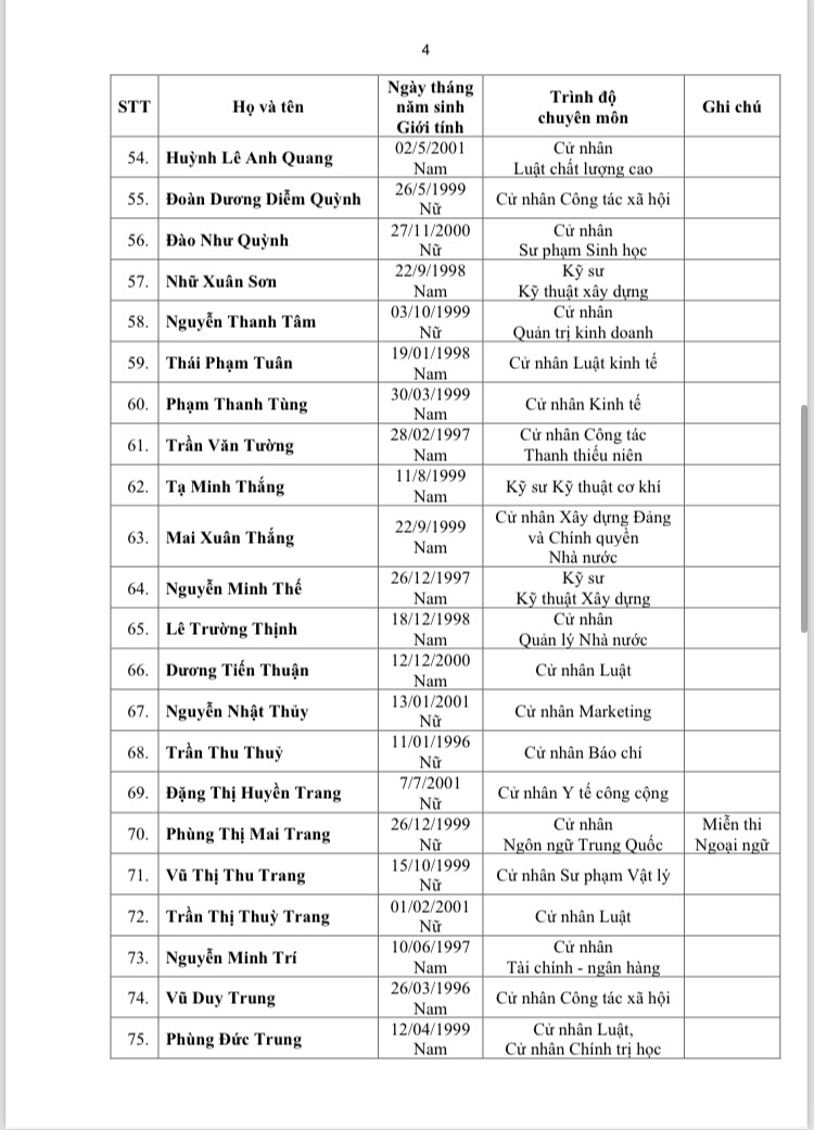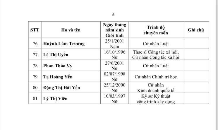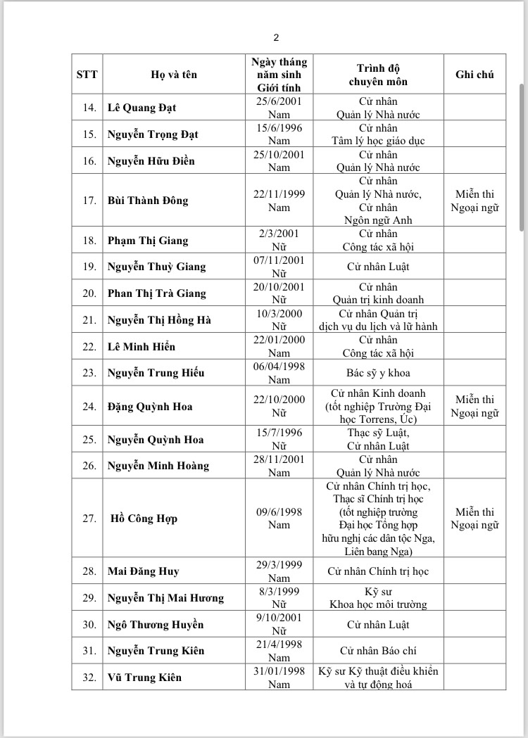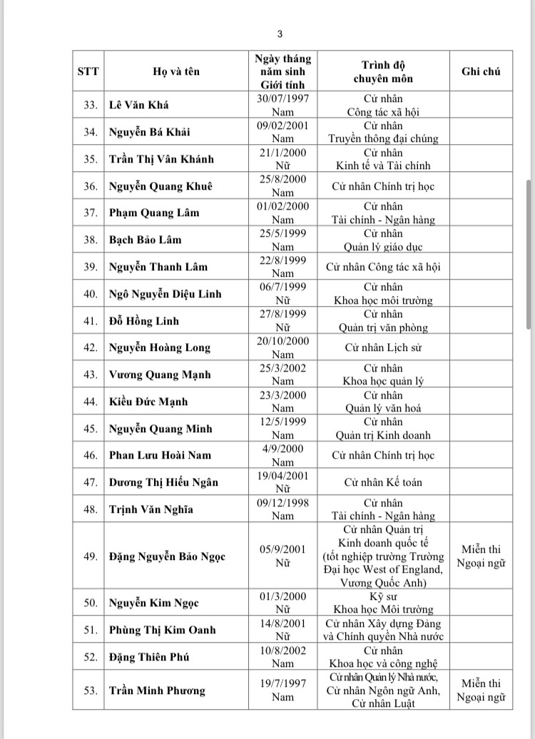 1. Vị trí việc làm Chuyên viên về công tác Đoàn Thanh niên: 81 thí sinh