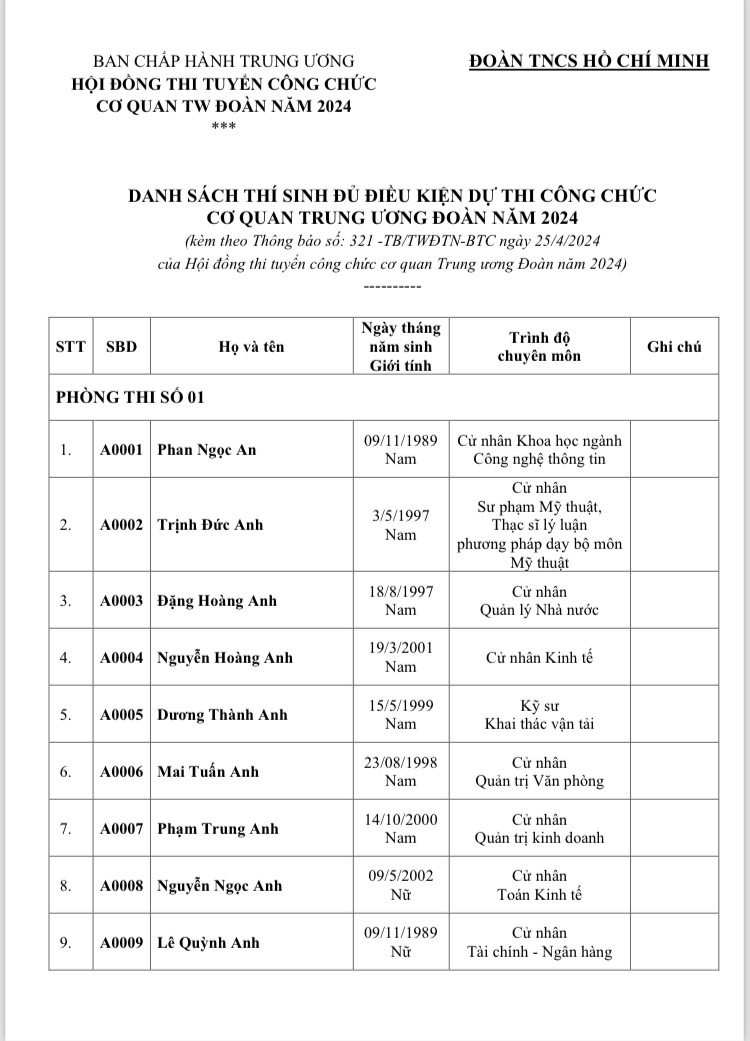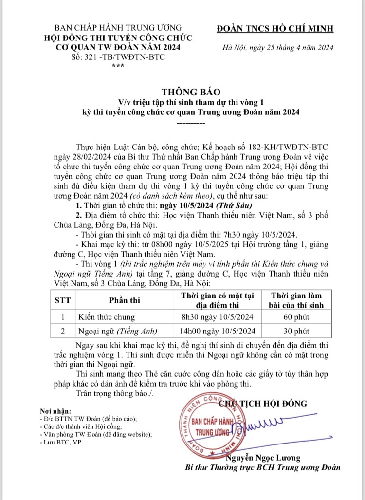 - Khai mạc kỳ thi: từ 08h00 ngày 10/5/2025 tại Hội trường tầng 1, giảng đường C, Học viện Thanh thiếu niên Việt Nam.