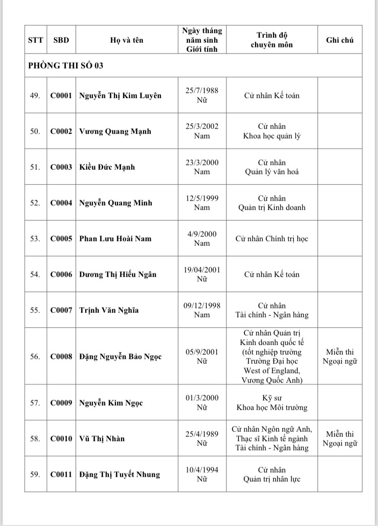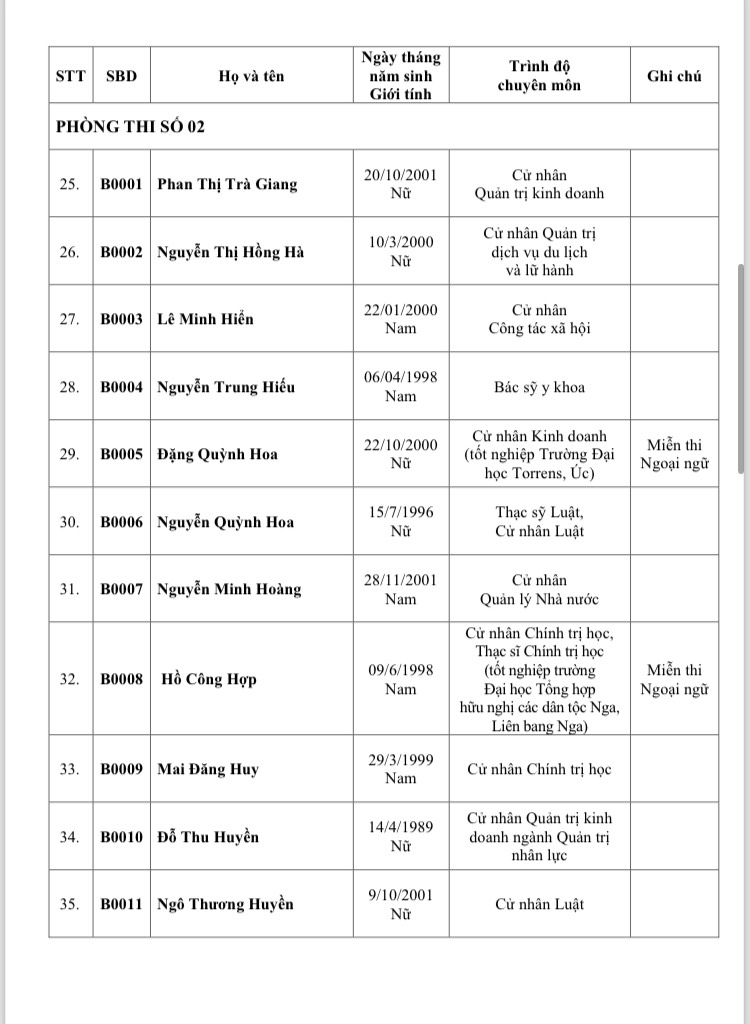 Ngay sau khi khai mạc kỳ thi, đề nghị thí sinh di chuyển đến địa điểm thi trắc nghiệm vòng 1. Thí sinh được miễn thi Ngoại ngữ không cần có mặt trong thời gian thi Ngoại ngữ.