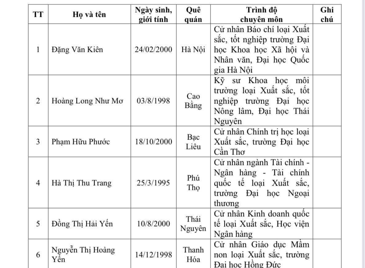 Thông báo triệu tập thí sinh đủ điều kiện tham gia xét tuyển sinh viên xuất sắc vào làm việc tại cơ quan Trung ương Đoàn