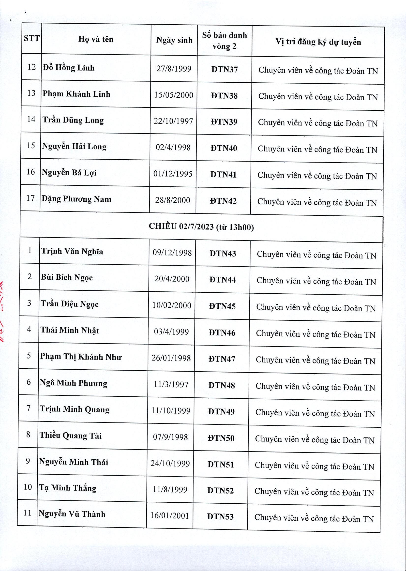 Thông báo triệu tập thí sinh dự thi vòng 2 kỳ thi tuyển công chức cơ quan TƯ Đoàn năm 2023. Xem tại đây
