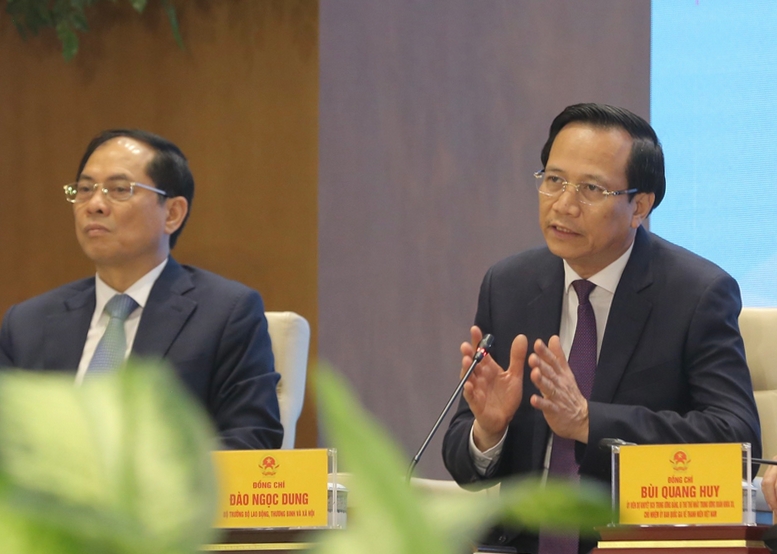 Bộ trưởng Bộ Lao động-Thương binh và Xã hội Đào Ngọc Dung trao đổi tại buổi Đối thoại