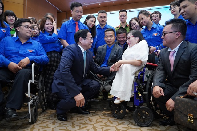 Thủ tướng Phạm Minh Chính gặp gỡ, trao đổi với các đại biểu người khuyết tật - Ảnh: VGP/Nhật Bắc