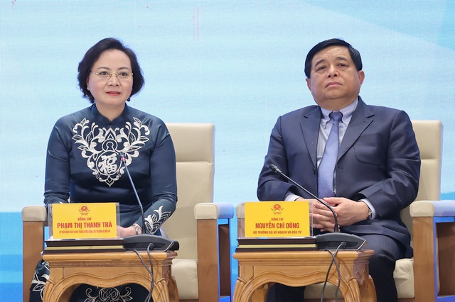 Bộ trưởng Bộ Nội vụ Phạm Thị Thanh Trà và Bộ trưởng KH&ĐT Nguyễn Chí Dũng tại Hội nghị đối thoại - Ảnh: VGP/Nhật Bắc