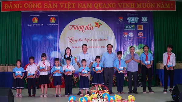 Bên cạnh đó, tại chương trình đã trao tặng 10 suất học bổng với tổng giá trị 10 triệu đồng, mỗi suất 01 triệu đồng cho 10 bạn thiếu nhi có hoàn cảnh khó khăn tại địa phương với sự hỗ trợ từ Công ty Cổ phần Sữa Quốc tế (IDP); tặng 580 phần quà Trung thu cho thiếu nhi trên địa bàn xã Lộc Hòa, huyện Phú Lộc. Món quà vật chất tuy nhỏ, nhưng đó chính là tình cảm, sự sẻ chia của các anh, chị cán bộ Đoàn, cán bộ Đội, các cơ quan, đơn vị trên khắp cả nước đối với thiếu nhi Thừa Thiên Huế.