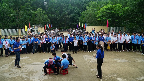 Các em thiếu nhi tham hào hứng tham gia trò chơi tập thể
