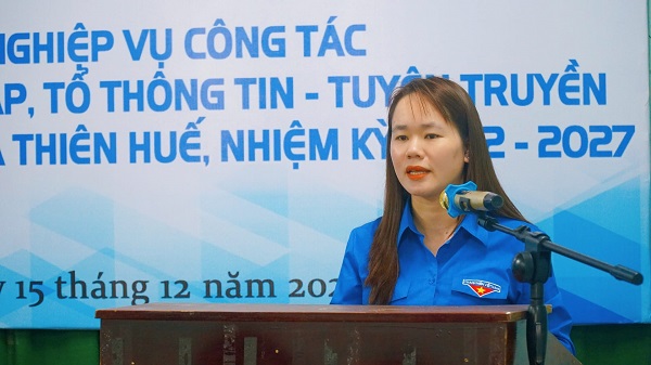 Đồng chí Hoàng Thị Thùy Linh - Phó Bí thư Thường trực Tỉnh Đoàn, Trưởng Ban Biên tập Đoàn TNCS Hồ Chí Minh tỉnh Thừa Thiên Huế, nhiệm kỳ 2022 - 2027 phát biểu tại chương trình