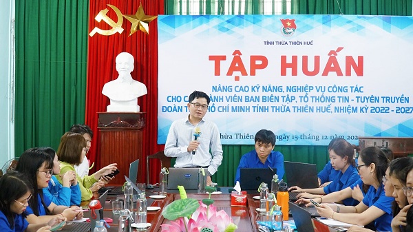 Tại lớp tập huấn, các đại biểu đã được nghe 03 chuyên đề đến từ đồng chí Lê Hoài Nhân - Phóng viên Báo Thanh niên tại Thừa Thiên Huế trao đổi các nội dung kiến thức, thực hành kỹ năng chụp ảnh, quay video và viết tin bài hoạt động; Kỹ năng thiết kế maket hoạt động trên ứng dụng Canva qua hướng dẫn của đồng chí Đỗ Viết An - Công ty Marketing Thái Thu; Kỹ năng tiếp cận và quản lý thông tin trên mạng xã hội, cách xử lí các tin xấu, độc trên mạng xã hội qua trao đổi của đồng chí Dương Văn Sỹ - Trưởng phòng Giám sát Thông tin mạng và Truyền thông, Trung tâm Giám sát, Điều hành Đô thị thông minh. Ngoài ra, Bộ phận chuyên môn Trung tâm Giám sát, Điều hành Đô thị thông minh tiến hành giới thiệu về website Tỉnh Đoàn trên giao diện mới, cách đăng bài và chỉnh sửa thông tin để đự kiến đưa vào hoạt động trong thời gian đầu năm 2024.
