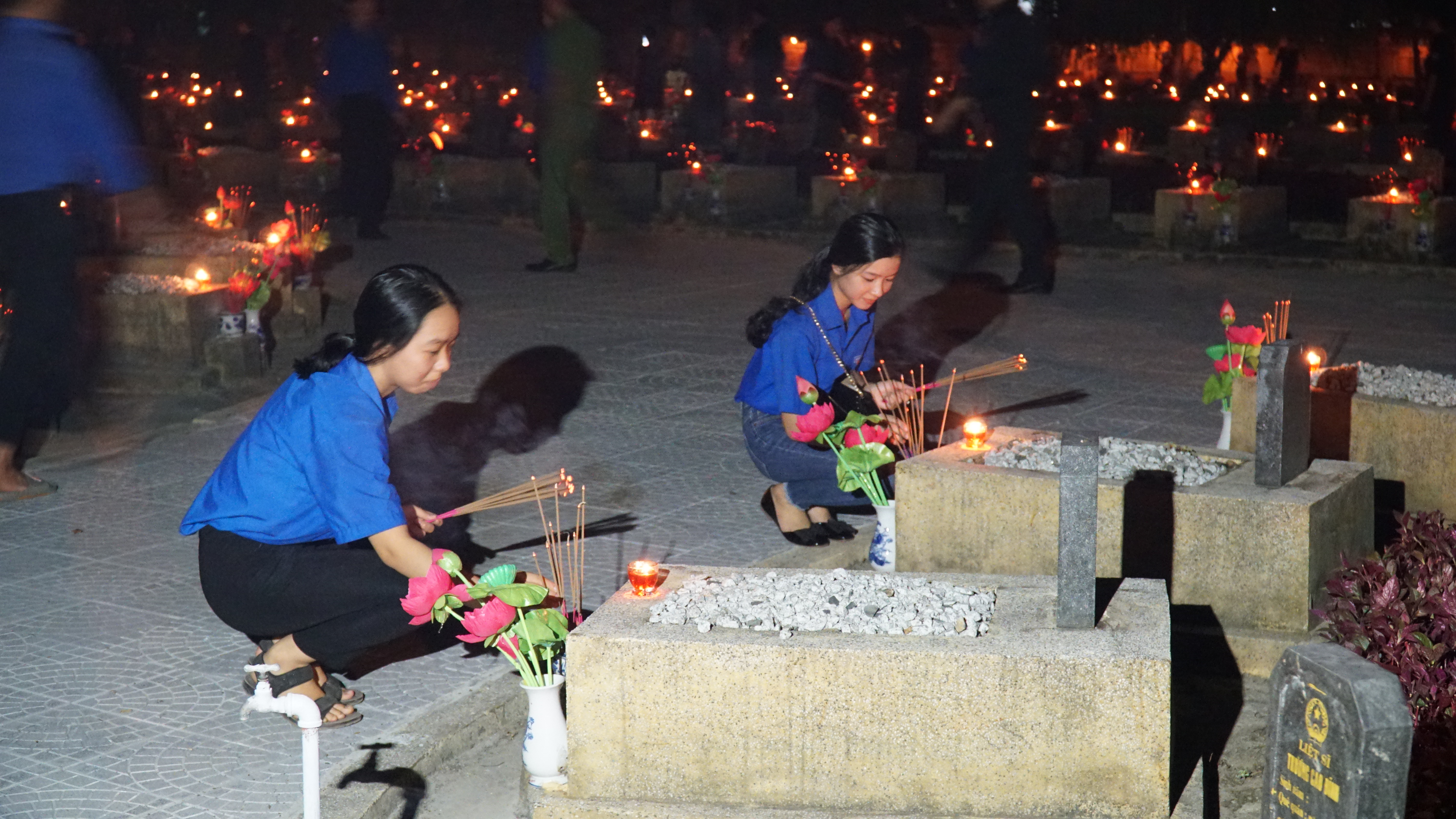 Hơn 800 đoàn viên thanh niên đã tham gia dâng hương, dâng hoa, thắp nến tri ân cho hơn 1.500 người con ưu tú đã hi sinh vì sự độc lập, tự do của đất nước đang yên nghỉ tại Nghĩa trang Liệt sĩ thị xã Hương Thủy, tỉnh Thừa Thiên Huế.