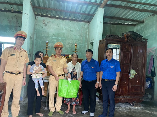 Thăm, trao tặng quà và động viên cho 02 gia đình có nạn nhân bị tai nạn giao thông có hoàn cảnh gia đình khó khăn trên địa bàn thị trấn Phú Đa