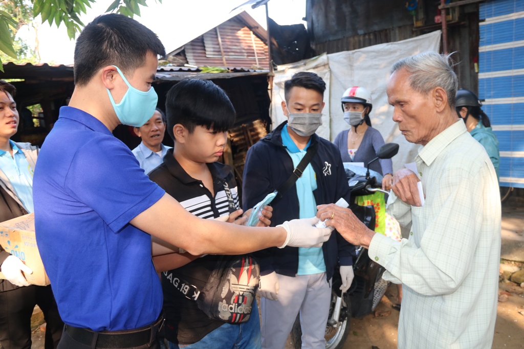 Đoàn viên thanh niên phát khẩu trang y tế miễn phí