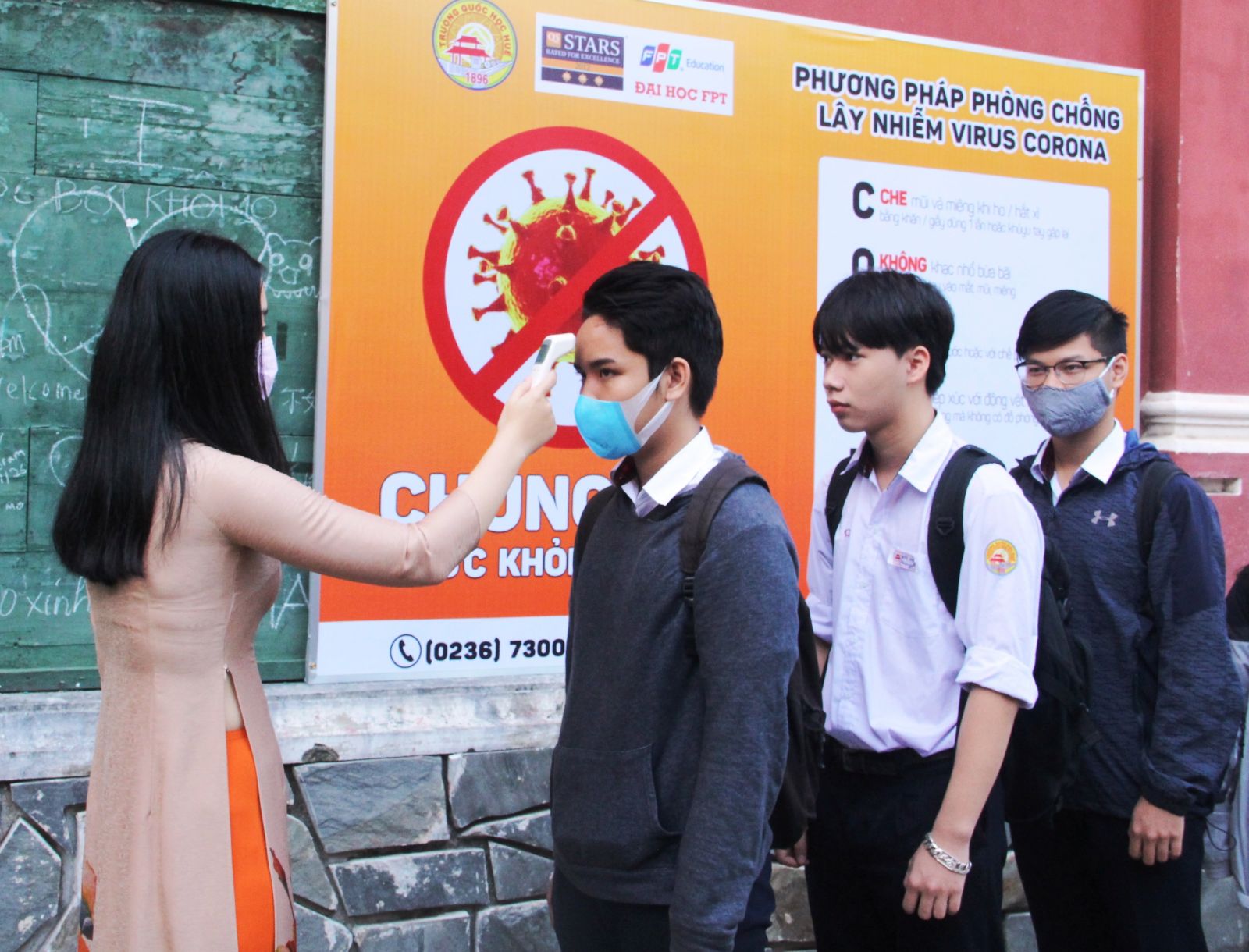 Kiểm tra thân nhiệt cho HS SV trước khi vào học