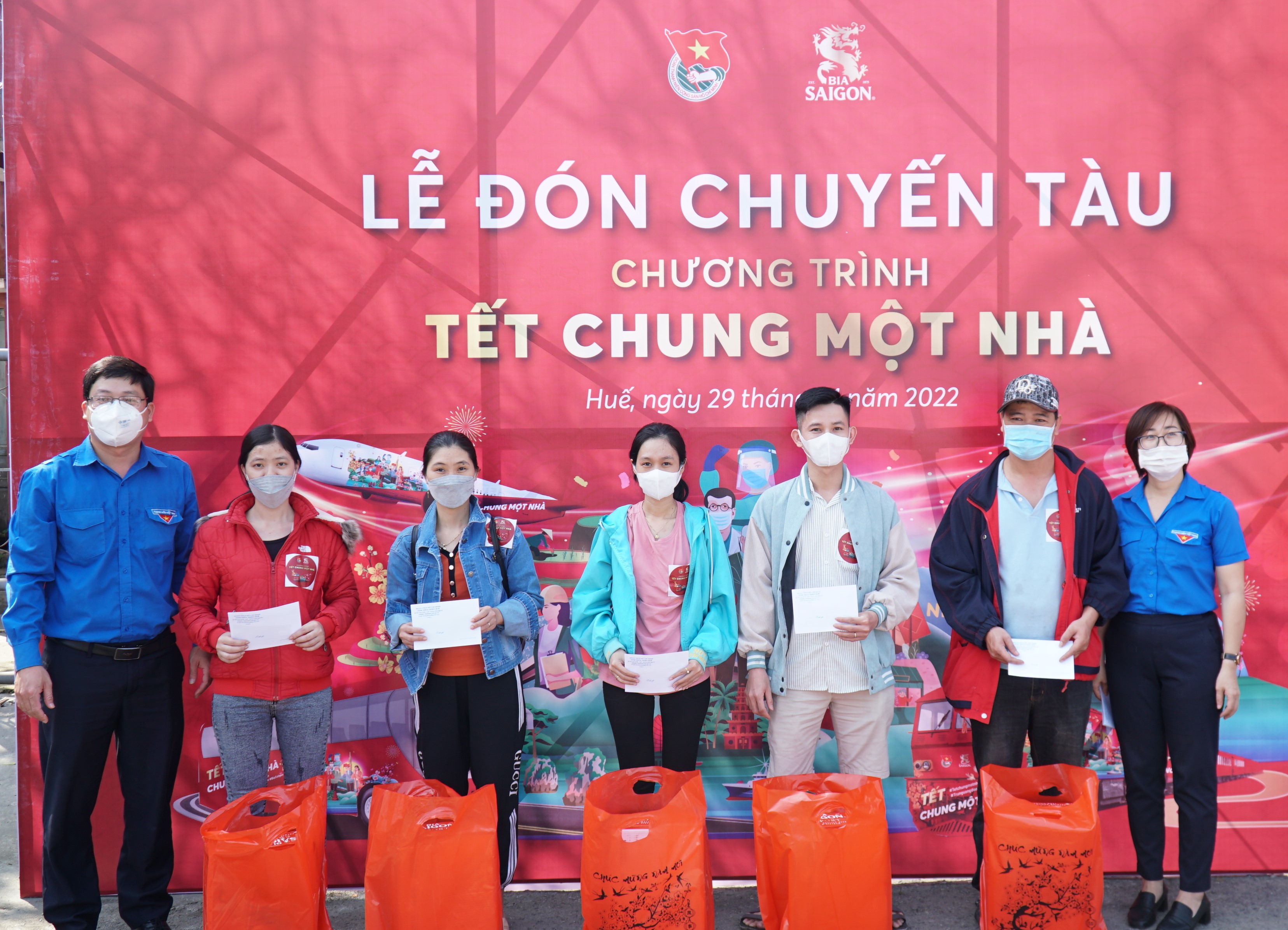 Tại buổi lễ, Ban Thường vụ Tỉnh Đoàn đã trao các phần quà Tết cho 40 người lao động, sinh viên có hoàn cảnh khó khăn tham gia chương trình năm nay. Mỗi suất quà bao gồm: 1 vé tàu hỏa, 1 thùng bia Saigonvà 500.000 đồng tiền mặt.