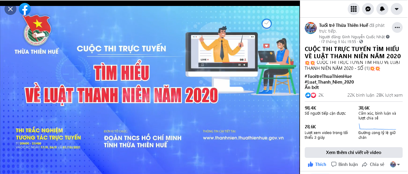 Được biết, trong thời gian vừa qua, do tình hình dịch bệnh Covid -19 diễn ra hết sức phức tạp, hoạt động của các cấp bộ Đoàn ít nhiều bị ảnh hưởng khi không thể tập trung đông người, vì vậy, Ban Thường vụ Tỉnh Đoàn Thừa Thiên Huế đã đẩy mạnh ứng dụng công nghệ số, đổi mới cách thức tổ chức chương trình phù hợp hơn với thực tiễn của địa phương. Đặc biệt, chú trọng đến hình thức tổ chức, tuyên truyền thông qua mạng xã hội facebook, zalo, với các hình ảnh gần gũi, sinh động, góp phần không nhỏ trong việc thu hút bạn trẻ tham gia tích cực vào các hoạt động, phong trào của Đoàn Thanh niên các cấp.