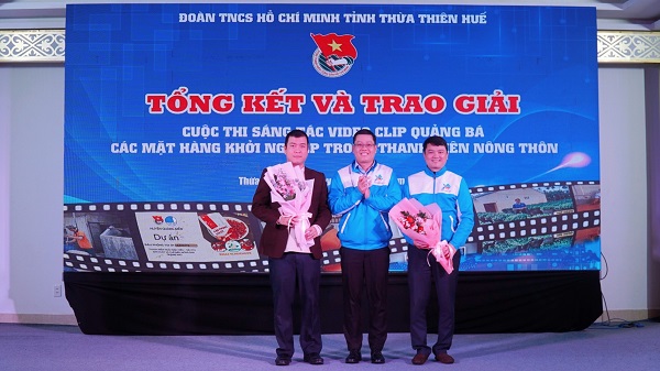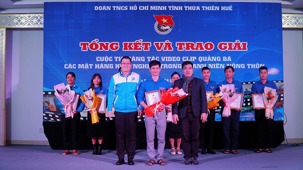 Về Cuộc thi sáng tác video clip quảng bá các mặt hàng khởi nghiệp trong thanh niên nông thôn, Ban Tổ chức đã trao 01 giải Nhất cho đại diện tác giả Trần Quốc Tín của đơn vị Đoàn xã Phú Thuận, huyện Phú Vang; 02 giải Nhì cho đại diện tác giả Lê Cảnh Thi của đơn vị Huyện Đoàn Quảng Điền và đại diện tác giả Nguyễn Tấn Nhân của đơn vị Đoàn xã Phú Dương, thành phố Huế; 02 giải Ba cho đại diện tác giả Nguyễn Anh Minh của đơn vị Đoàn phường Tứ Hạ, thị xã Hương Trà và đại diện tác giả Nguyễn Thị Thanh Nhàn của đơn vị Đoàn xã Phú Mậu, thành phố Huế; 03 giải Khuyến khích cho đại diện tác giả Nguyễn Thị Phương Nhung của đơn vị Đoàn xã Phú Thanh, thành phố Huế; đại diện tác giả Trần Thị Ngọc Nhung của đơn vị Đoàn phường Hương Văn, thị xã Hương Trà và đại diện tác giả Nguyễn Thị Thịnh của đơn vị Đoàn phường Hương Xuân, thị xã Hương Trà.