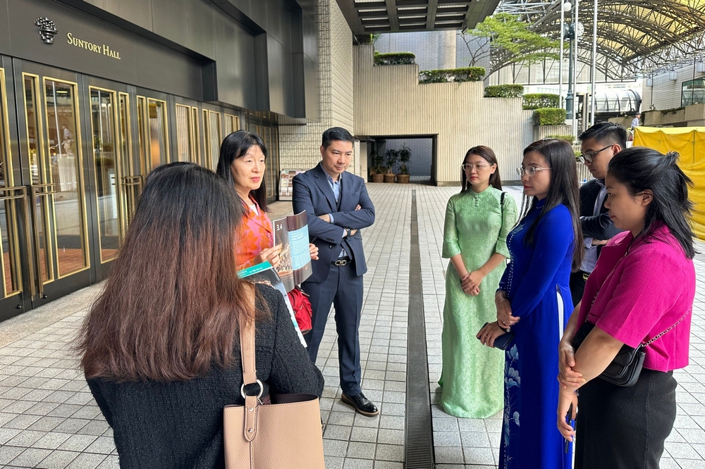 Cùng ngày, Đoàn đại biểu T.Ư Đoàn đã tới thăm Bảo Tàng Suntory và Nhà hát Suntory tìm hiểu một trong những sáng kiến phát triển bền vững tiêu biểu của tập đoàn tại Nhật Bản./.