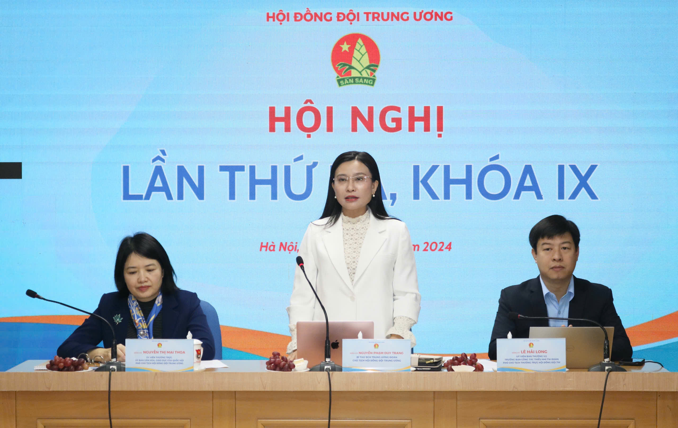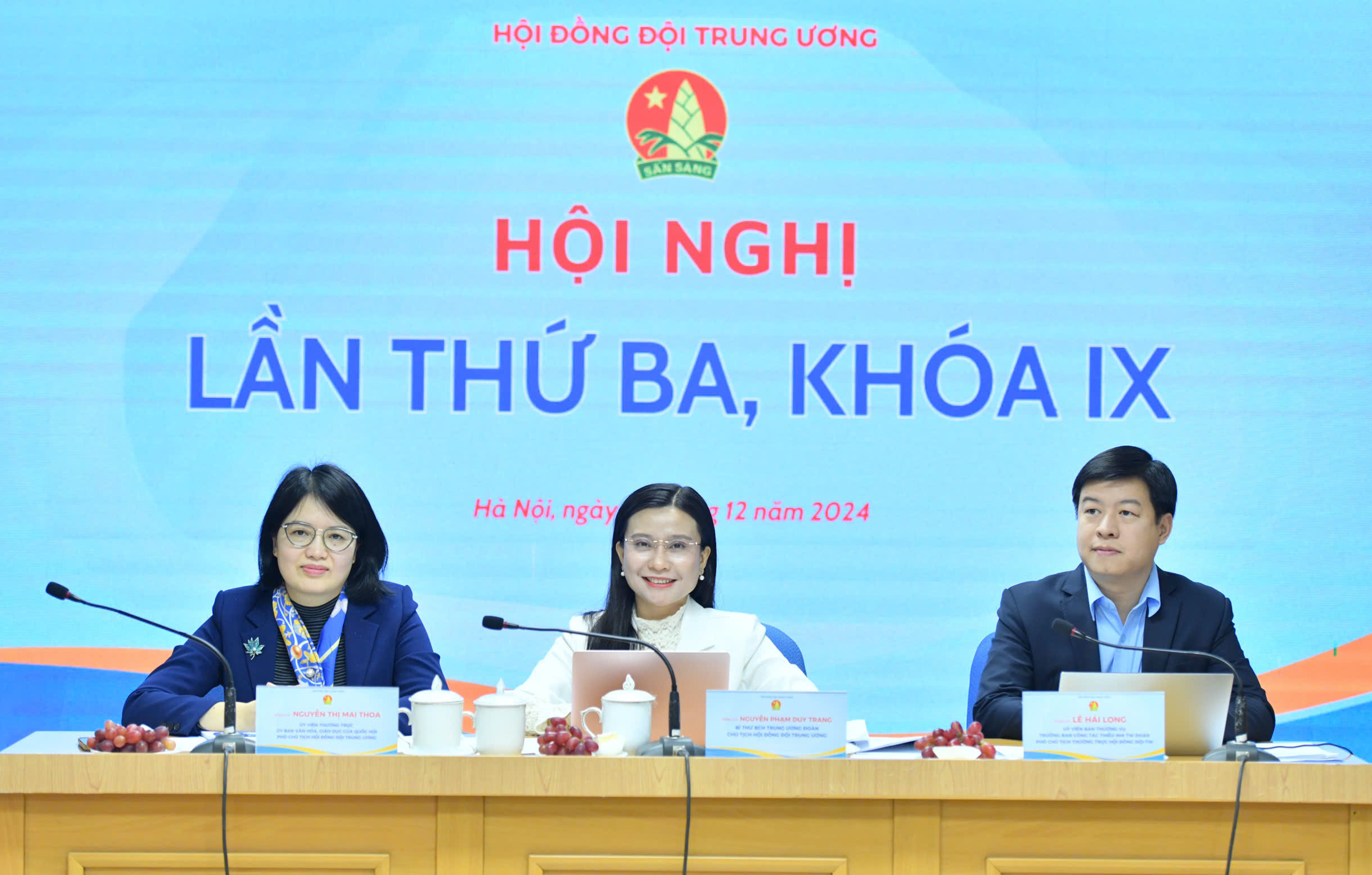Phát biểu khai mạc hội nghị, đồng chí Nguyễn Phạm Duy Trang, Bí thư Trung ương Đoàn, Chủ tịch Hội đồng Đội Trung ương, cho biết sau khi triển khai nhiều hoạt động trong học kỳ I, Hội đồng Đội Trung ương đã tổ chức kỳ họp lần thứ ba, khóa IX. Đây là dịp quan trọng để cụ thể hóa Nghị quyết Đại hội Đoàn, hướng đến việc sơ kết giữa nhiệm kỳ vào năm 2025; đồng thời, năm 2025 cũng đánh dấu nhiều ngày lễ trọng đại của đất nước.