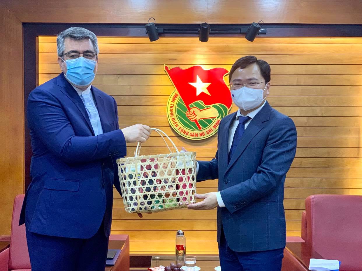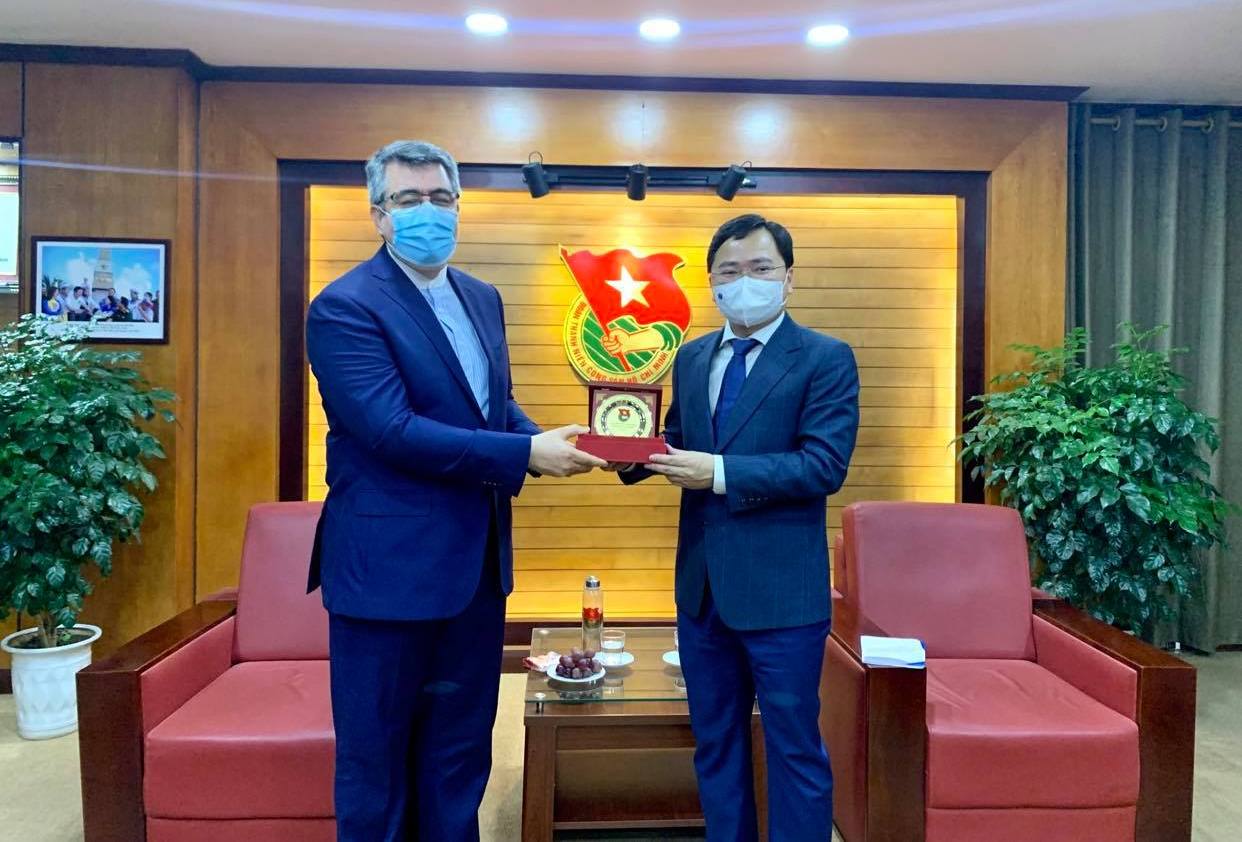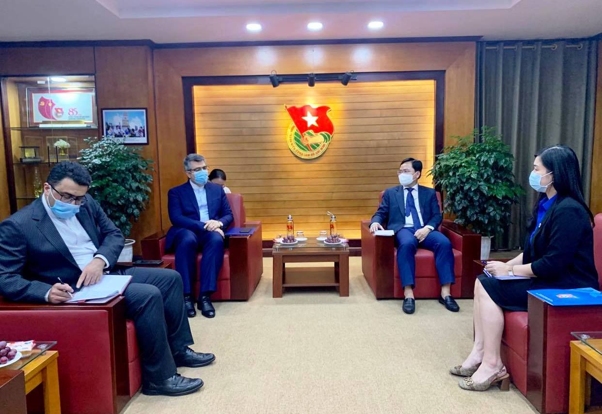 Bên cạnh đó, Ngài Đại sứ cũng giới thiệu về tổ chức thanh niên ở Iran và mong muốn mời Đoàn thanh niên, trực tiếp là Bí thư thứ nhất T.Ư Đoàn đến thăm đất nước Iran và mong các tổ chức thanh niên ở Iran được sang thăm Việt Nam, để hai bên hiểu biết lẫn nhau, mở ra các quan hệ hợp tác trong công tác thanh niên.