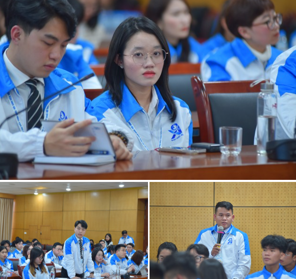 Chủ trì tổ thảo luận, có chị Trần Thu Hà - Ủy viên BCH T.Ư Đoàn, Phó Chủ tịch T.Ư Hội Sinh viên Việt Nam; anh Đặng Ngọc Đông - Phó Bí thư Tỉnh đoàn, Chủ tịch Hội Sinh viên Việt Nam tỉnh Hưng Yên.