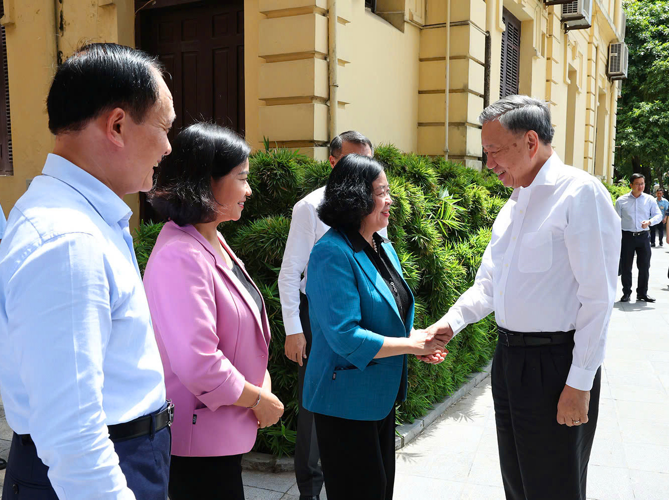 Tổng Bí thư, Chủ tịch nước Tô Lâm đến thăm, làm việc với Ban Thường vụ Thành ủy Hà Nội. (Ảnh: TTXVN)