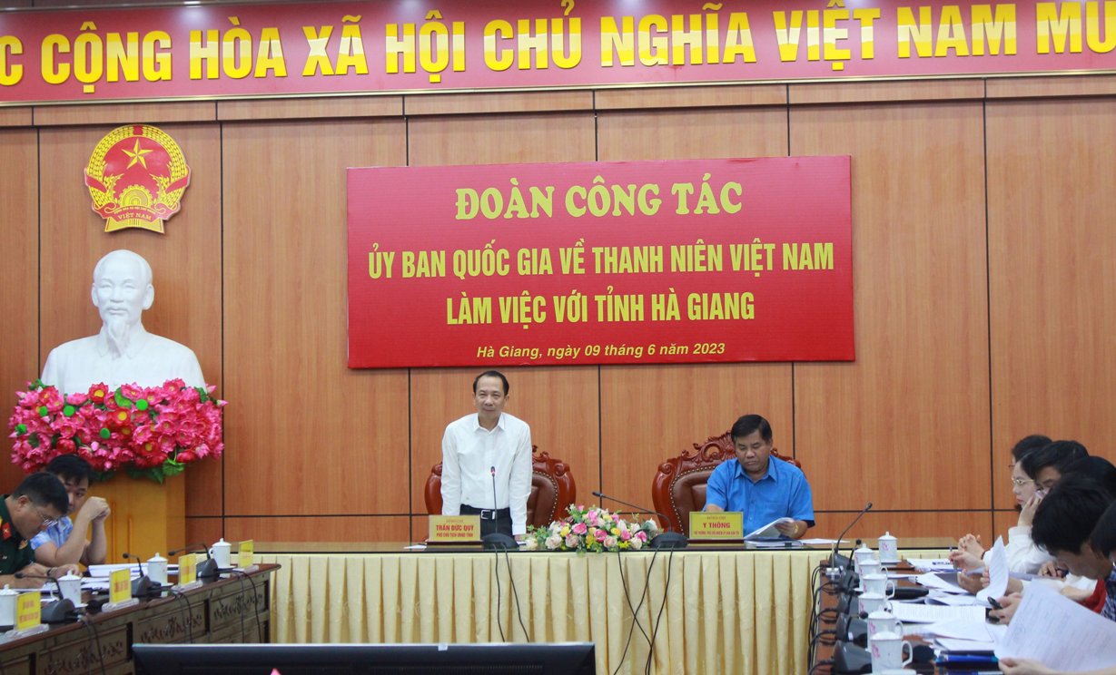 Tham dự buổi làm việc có đồng chí Trần Đức Quý - Phó chủ tịch UBND tỉnh Hà Giang; lãnh đạo các sở ban ngành tỉnh Hà Giang, thành viên UBQG về thanh niên Việt Nam.