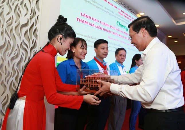 Đồng chí Võ Văn Thưởng mong muốn các cháu thiếu nhi Lào, Campuchia luôn nhớ về Việt Nam, về TP HCM thân thiện, vô cùng hiếu khách… và các cháu tiếp tục là những đại sứ vun đắp tình hữu nghị của nhân dân ba nước.