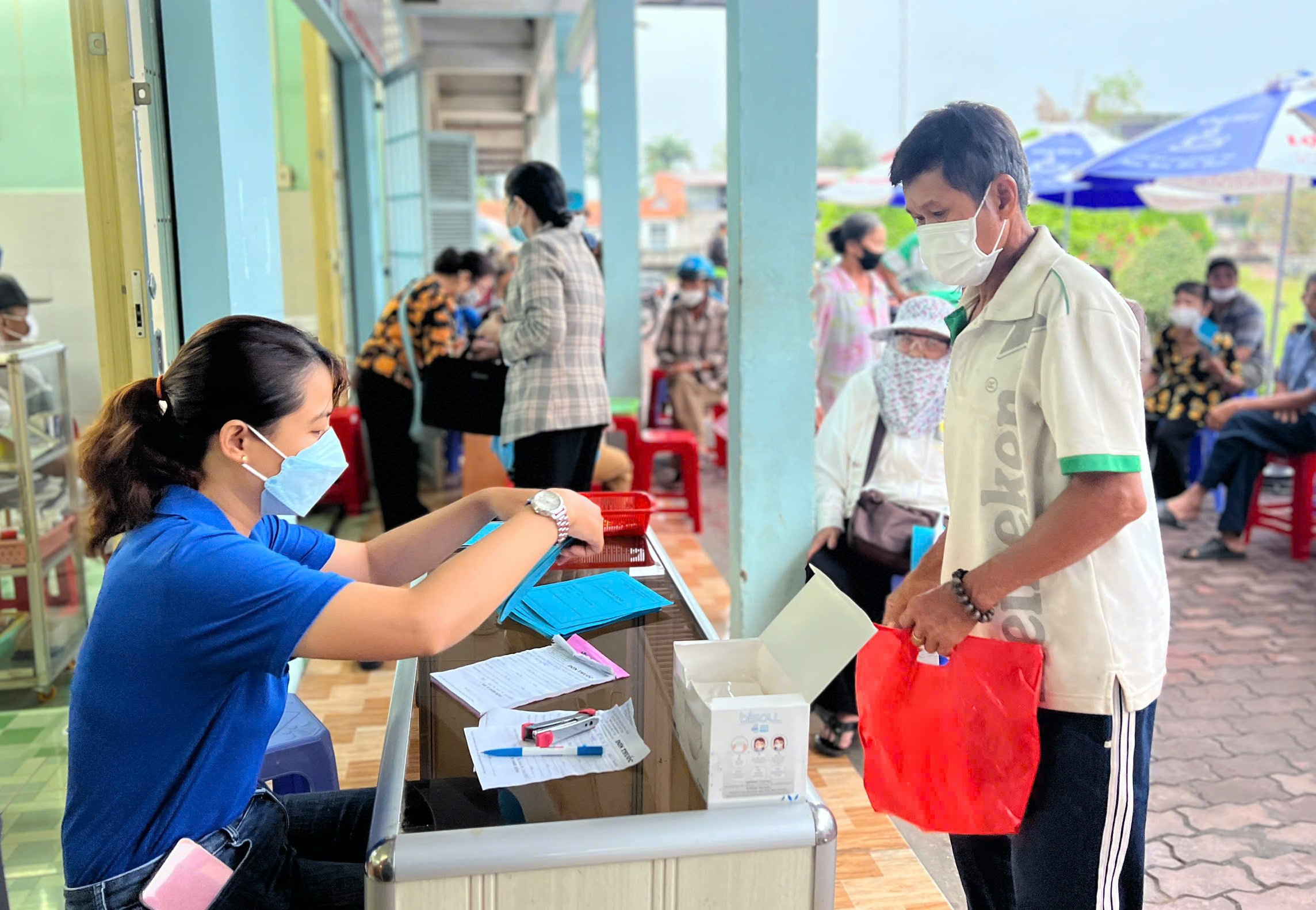 Quang cảnh buổi khám, phát thuốc cho người dân tại phòng khám