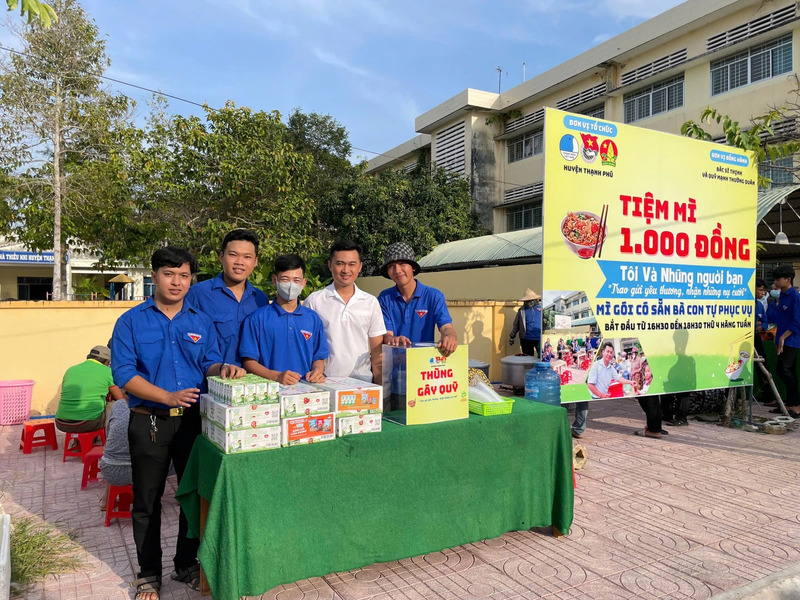 "Bác sĩ Đặng Quốc Thịnh, công tác tại Trung tâm y tế huyện Thạnh Phú, là người nêu ý tưởng mở tiệm mì 1.000 đồng để Huyện đoàn phối hợp thực hiện. Sau khi thực hiện 2 lần thì được thầy Nguyễn Văn Hận, Trưởng nhóm thiện nguyện Miệt Cồn, vận động hỗ trợ kinh phí và các phần quà là tiền mặt để trao tặng", đồng chí Vi nói.