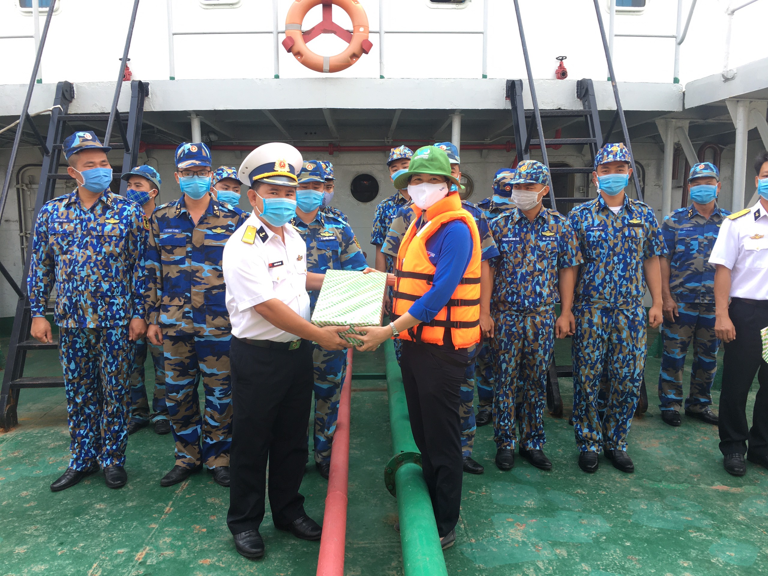 Đoàn đã tặng các nhu yếu phẩm thiết yếu và thăm hỏi cuộc sống, động viên các chiến sĩ, các chiến sĩ trên Tàu 936 - Học viện hải quân.