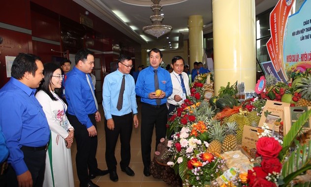 Đồng chí Ngô Văn Cương, Bí thư Trung ương Đoàn tham quan các gian hàng tại đại hội