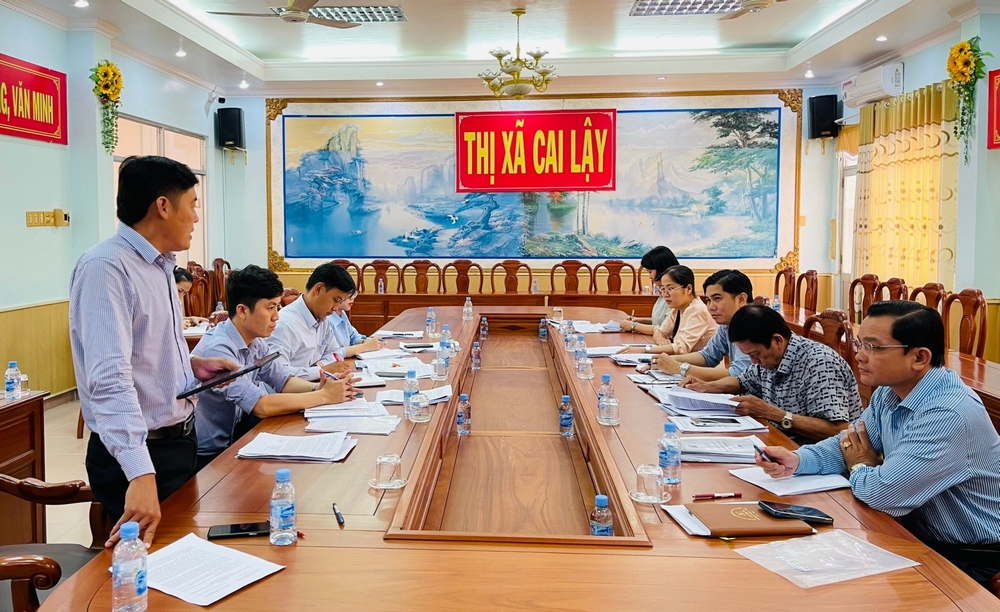 Đoàn công tác làm việc cùng Thường trực Thị ủy, Ban Dân vận Thị ủy và Ban Thường vụ Thị Đoàn Cai Lậy.