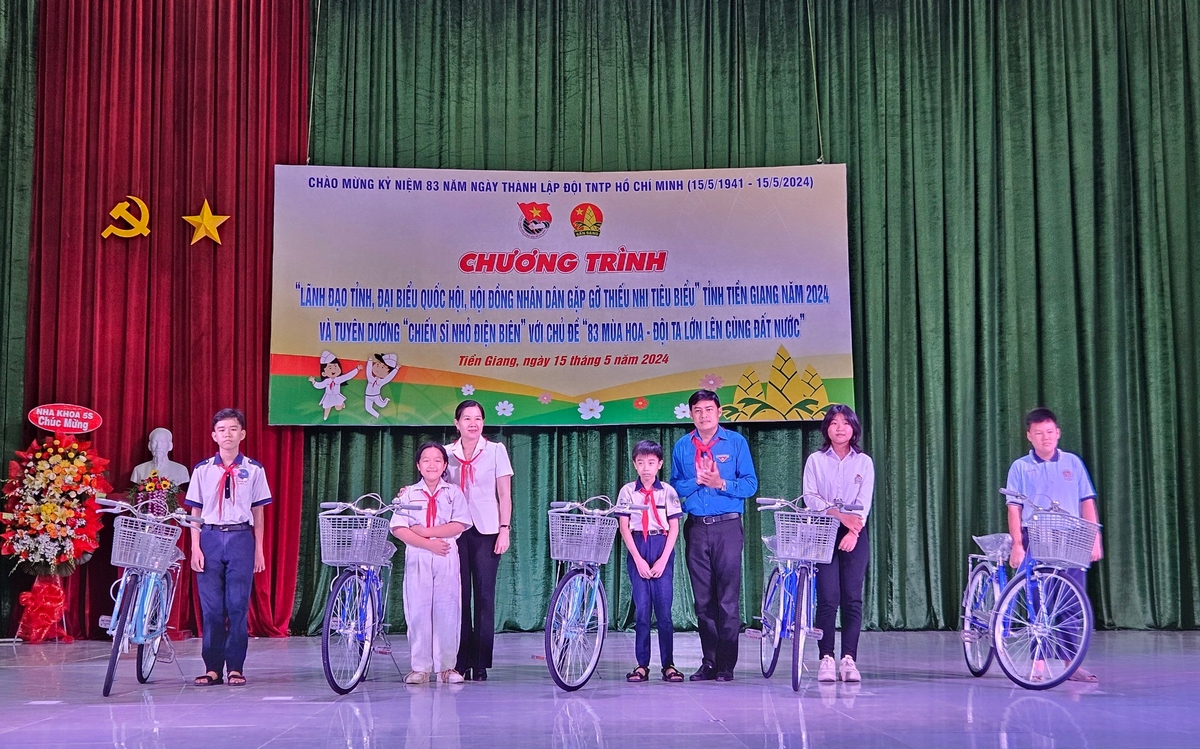 Nhân dịp này, Ban Tổ chức đã trao 20 phần quà gồm: 5 xe đạp và 15 suất học bổng mỗi suất trị giá 1.000.000đ cho các em đội viên, học sinh tiêu biểu có hoàn cảnh khó khăn. Đồng thời, trao 05 căn nhà Khăn quàng đỏ cho 05 đơn vị: Cái Bè, Tân Phước, Gò Công Tây, Gò Công Đông, Tân Phú Đông với tổng giá trị 250 triệu đồng.