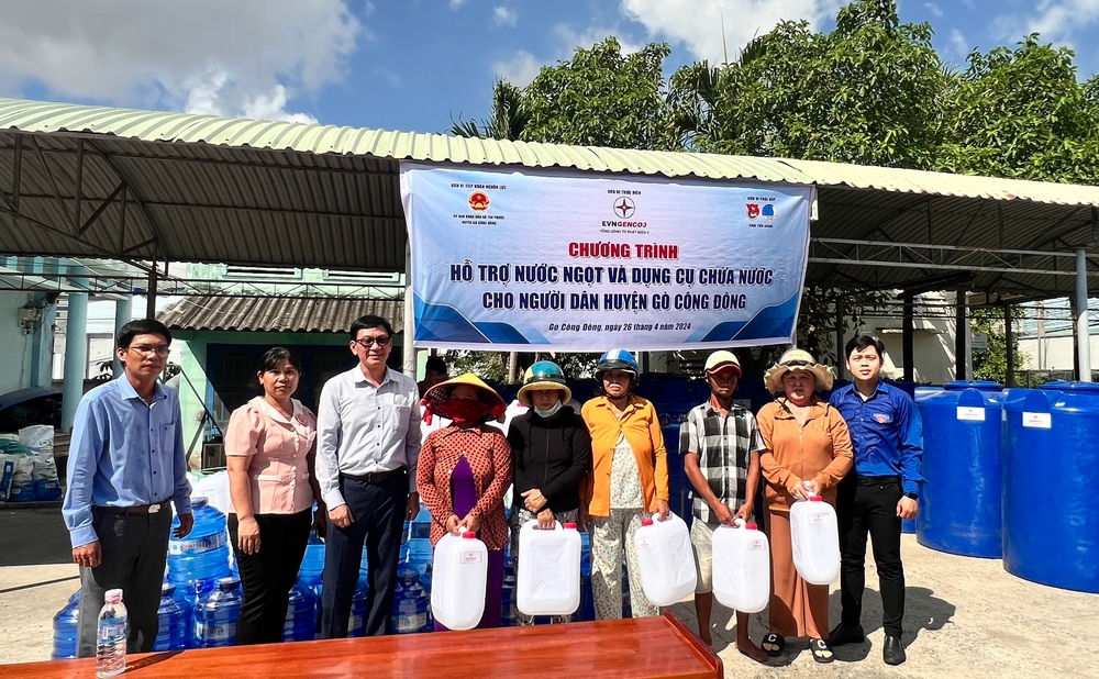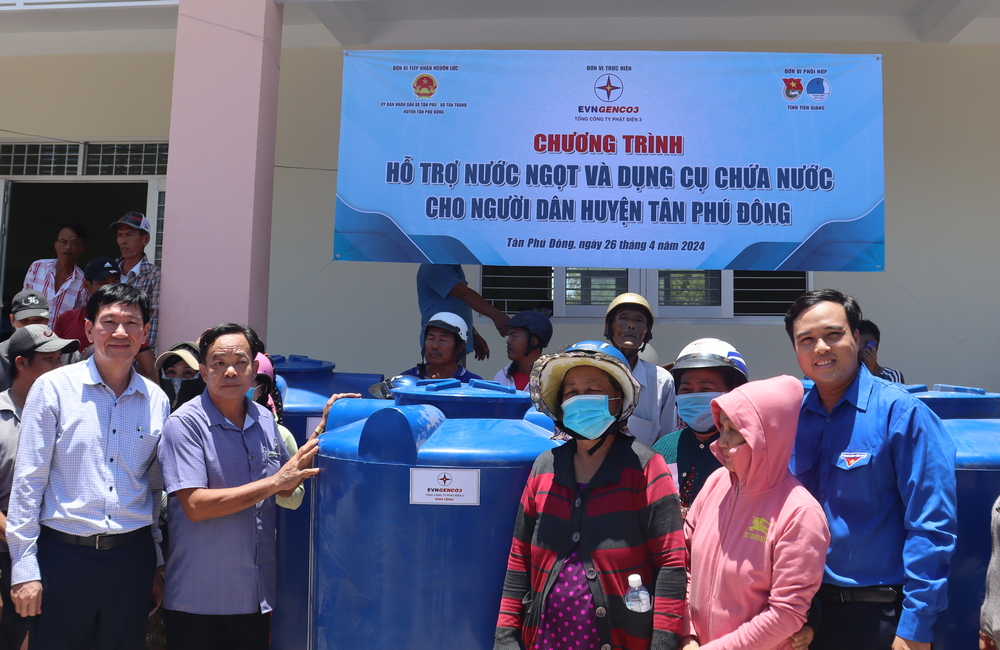 Nắm bắt được những khó khăn cũng như nhu cầu của Nhân dân địa phương; nhằm chia sẻ những khó khăn với người dân khu vực bị ảnh hưởng bởi hạn hán, xâm nhập mặn; Tổng Công ty Phát điện 3 đã hỗ trợ 150 can chứa nước (loại 30 lít), 100 bình nước uống (loại 21 lít), 50 bồn chứa nước (loại 1.000 lít) và 03 chuyến xe chở nước ngọt (26 mét khối nước) cho người dân chịu ảnh hưởng bởi hạn, mặn tại xã Tân Phước (huyện Gò Công Đông), xã Tân Phú – xã Tân Thạnh (huyện Tân Phú Đông).. Tổng trị giá các nguồn lực trao tại chương trình lên đến 130 triệu đồng.
