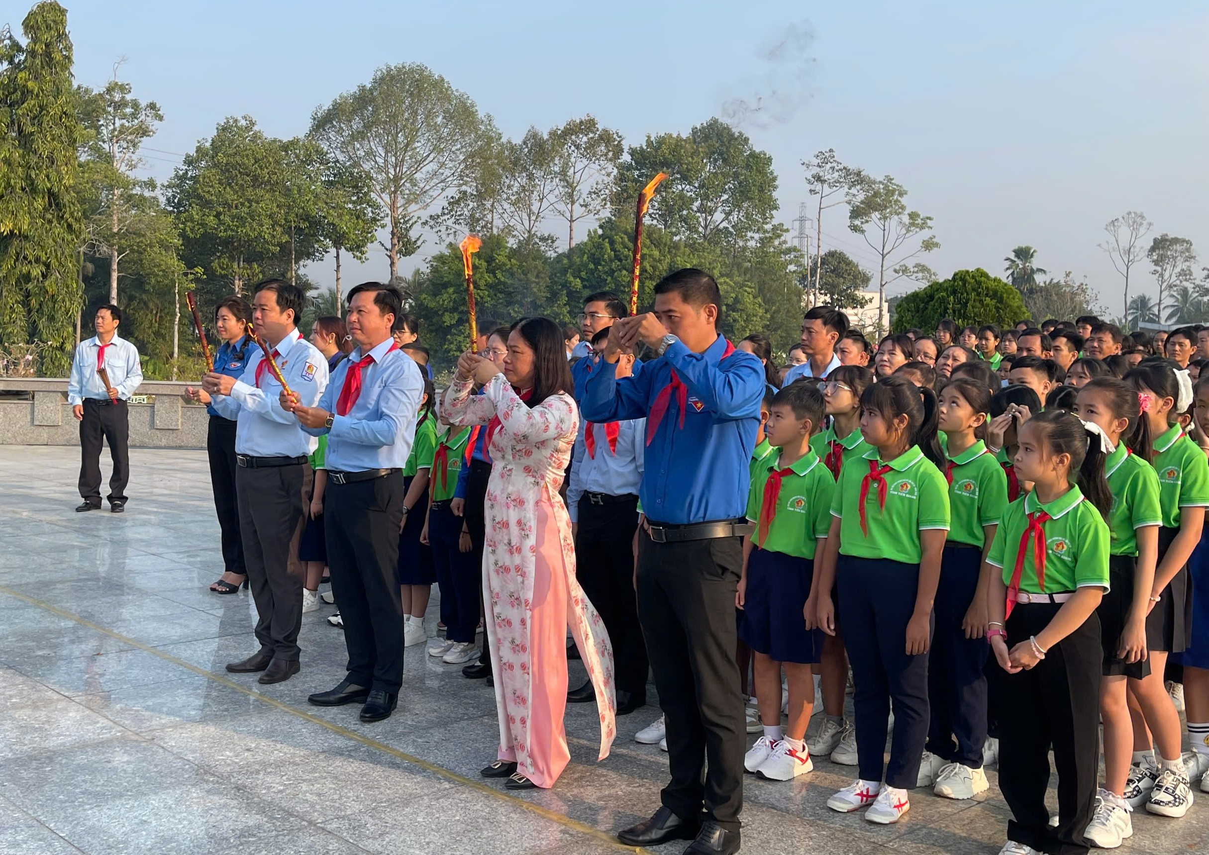 Chuỗi hoạt động ý nghĩa được khởi đầu bằng Lễ viếng Nghĩa trang Liệt sĩ tỉnh Tiền Giang – một truyền thống thiêng liêng nhằm tri ân những anh hùng đã hy sinh vì độc lập, tự do của Tổ quốc. Trong không khí trang nghiêm, các em thiếu nhi thành kính thắp hương, dâng hoa và dành một phút mặc niệm để tưởng nhớ những người đã ngã xuống. Buổi lễ không chỉ khơi dậy lòng biết ơn sâu sắc mà còn nuôi dưỡng trong các em tinh thần yêu nước, ý thức trách nhiệm với quê hương, đất nước.