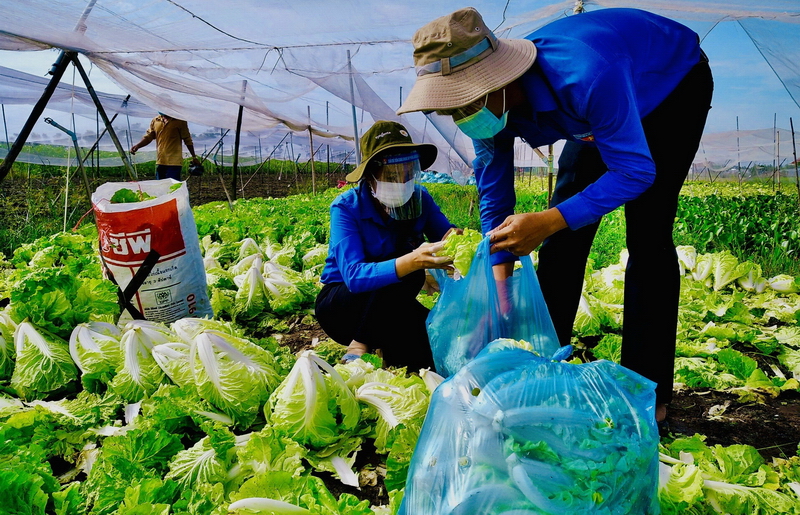 Trên các cánh đồng đoàn viên, thanh niên tích cực hỗ trợ người nông dân thu hoạch và tiêu thụ nông sản