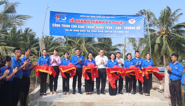 Sau Lễ ra quân, lãnh đạo, đại biểu, đoàn viên, thanh niên tham gia thực hiện các công trình, phần việc hưởng ứng Lễ ra quân Tháng Thanh niên năm 2025 trên địa bàn xã Long Vĩnh, huyện Gò Công Tây như: Khánh thành kỹ thuật công trình cầu giao thông nông thôn - Cầu Trường An; khánh thành tuyến đường “Camera giám sát an ninh trật tự”.