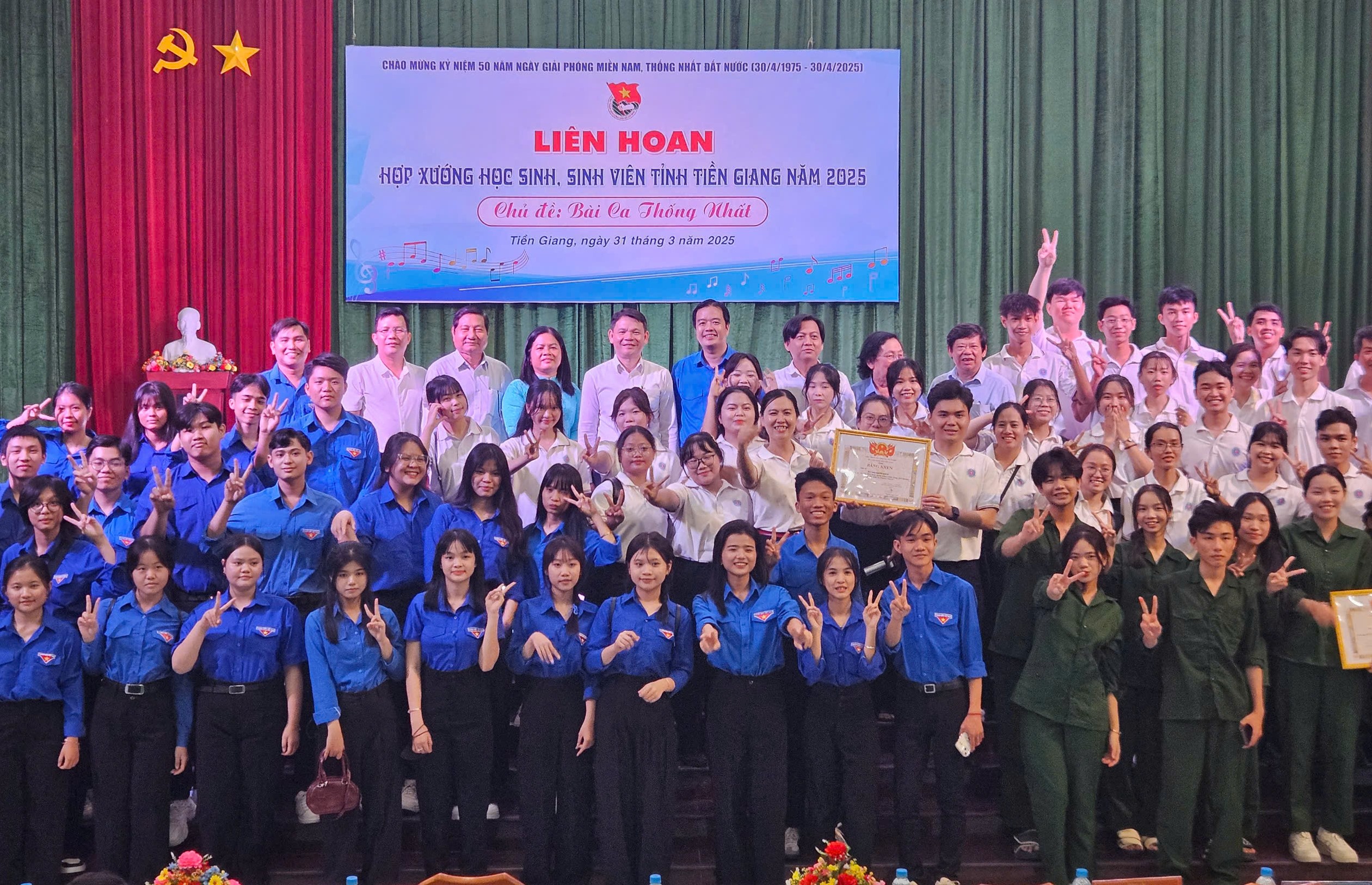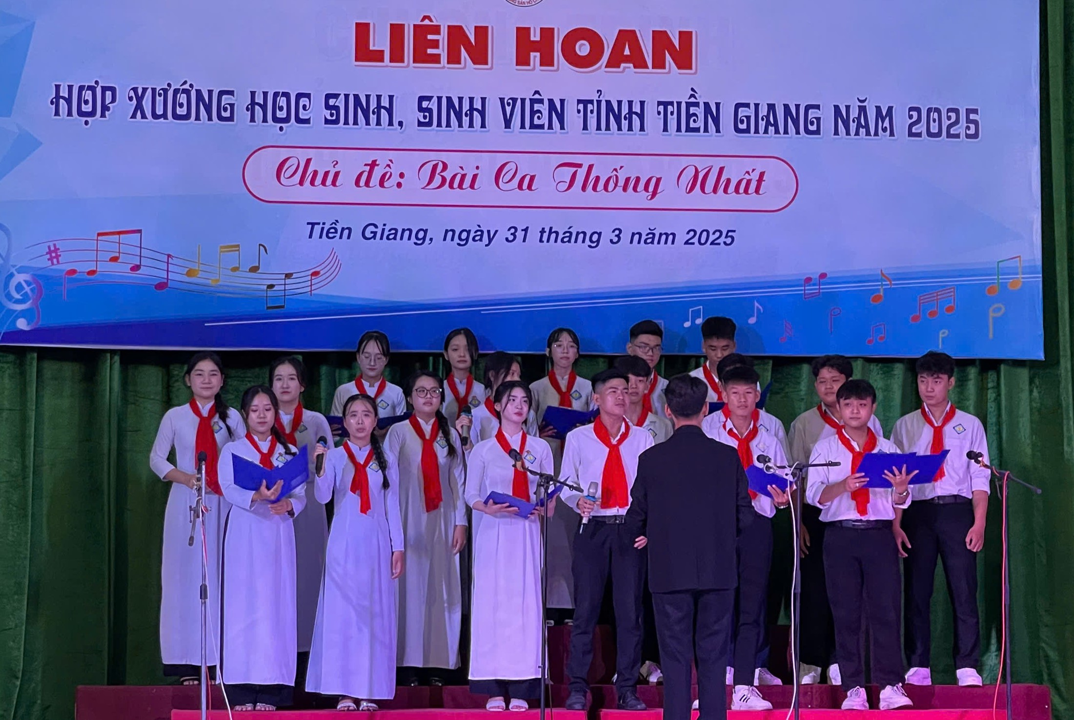 ĐTN: Ngày 31/3/2025 tại Nhà Thiếu nhi tỉnh Tiền Giang, Ban Thường vụ Tỉnh đoàn tổ chức Liên hoan Hợp xướng học sinh, sinh viên tỉnh Tiền Giang năm 2025 với chủ đề “Bài ca thống nhất”. Đây là hoạt động thiết thực chào mừng kỷ niệm 50 năm Ngày Giải phóng miền Nam, thống nhất đất nước