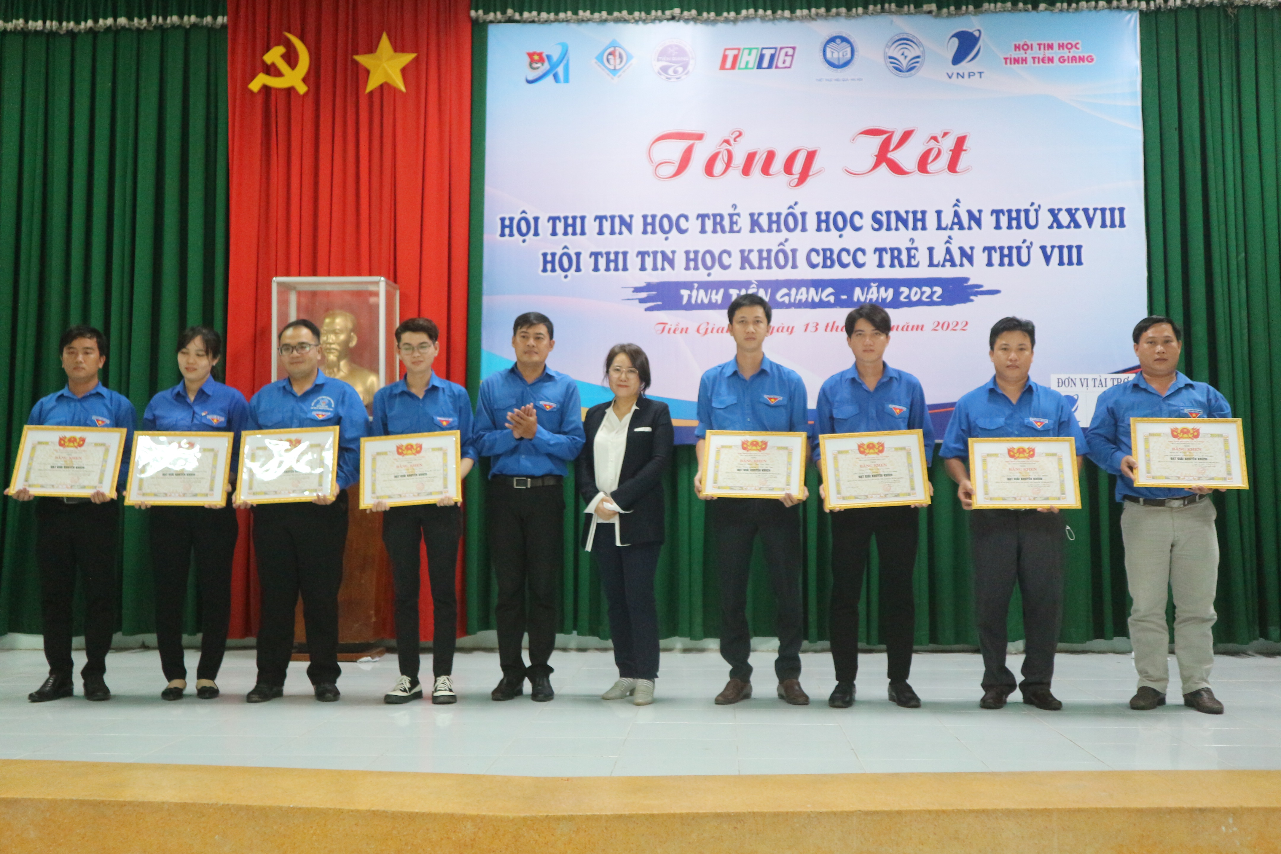 Dịp này, Ban Thường vụ Tỉnh Đoàn phối hợp với các đơn vị liên ngành tổng kết và trao thưởng Hội thi Tin học trẻ khối học sinh lần thứ XXVIII và Hội thi Tin học khối Cán bộ công chức trẻ lần thứ VIII tỉnh Tiền Giang - năm 2022.