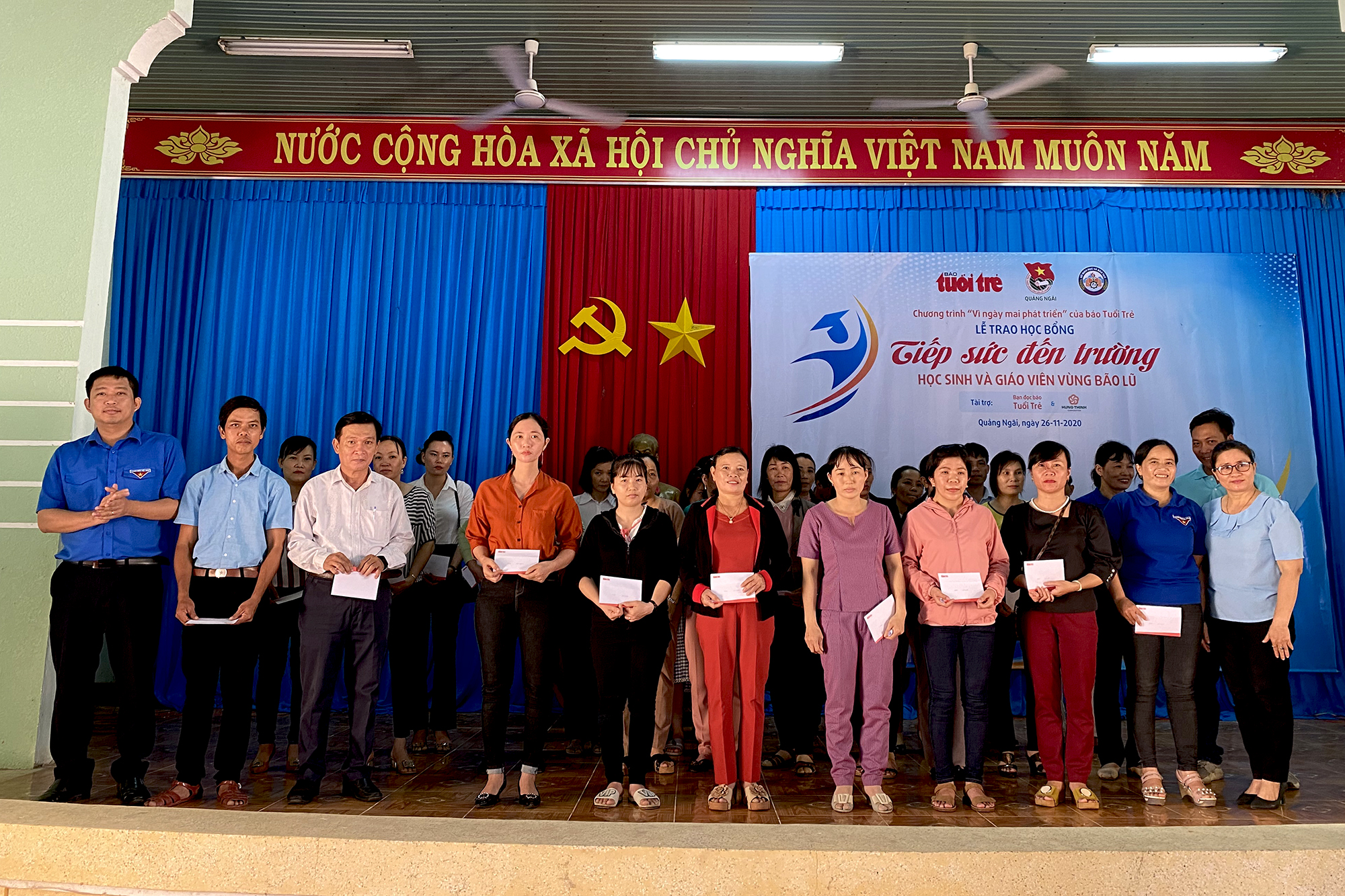 Theo anh Cao Lê Tùng Nghĩa, Phó Bí thư Tỉnh đoàn Quảng Ngãi, đơn vị đồng hành cùng Báo Tuổi trẻ trong Chương trình “Vì ngày mai phát triển”, Chương trình “Tiếp sức đến trường cho học sinh và giáo viên vùng lũ” tỉnh Quảng Ngãi được tổ chức nhằm hỗ trợ kịp thời học sinh và giáo viên có hoàn cảnh khó khăn do ảnh hưởng bởi thiên tai, bão lũ trong năm 2020, giúp các em học sinh có điều kiện đến trường, không dở dang giấc mơ học tập; các thầy cô giáo được an tâm trong công tác giảng dạy.