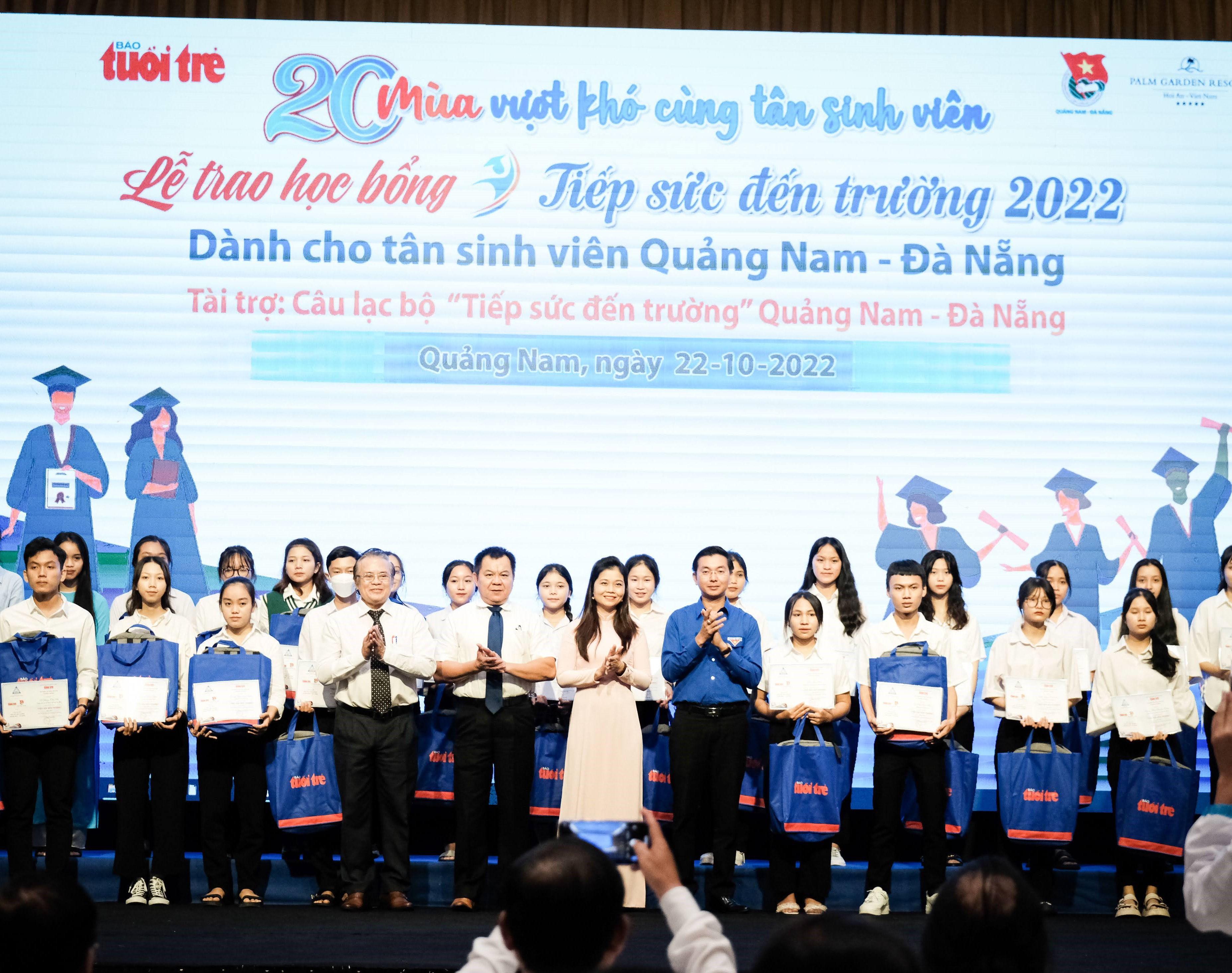 Đây cũng là điểm đầu tiên của chương trình Tiếp sức đến trường năm 2022 dành cho tân sinh viên, thuộc chương trình "Vì ngày mai phát triển" lần thứ 550 của báo Tuổi Trẻ. Năm nay, CLB TSĐT Quảng Nam - Đà Nẵng tài trợ kinh phí học bổng hơn 1,5 tỉ đồng cho 95 tân sinh viên với mỗi suất trị giá 15 triệu đồng; trao 10 phần thưởng, mỗi suất 15 triệu đồng cho 10 sinh viên có hoàn cảnh khó khăn, từng nhận học bổng Tiếp sức đến trường và có thành tích học tập xuất sắc, tham gia các hoạt động vì cộng đồng tại trường và địa phương trong thời gian qua.