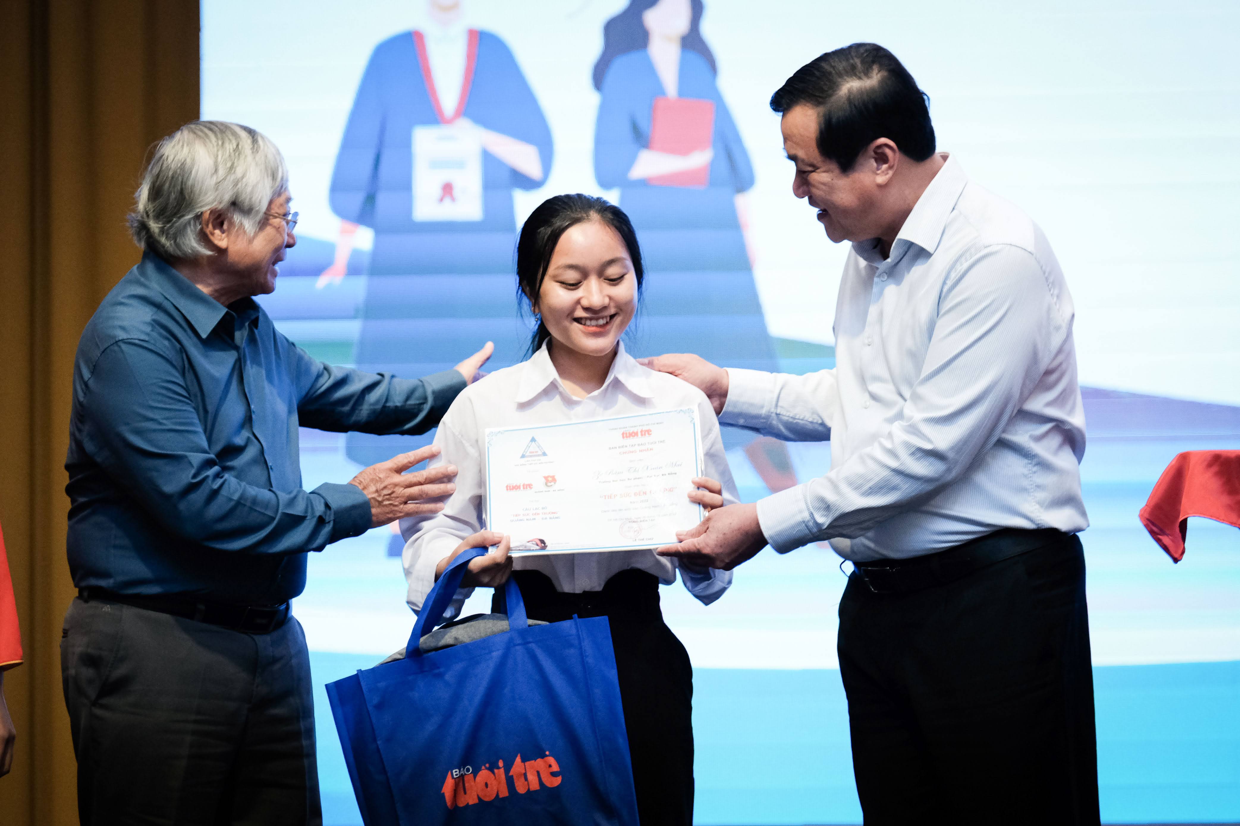Còn ông Phạm Phú Tâm - Chủ nhiệm Câu lạc bộ Tiếp sức đến trường Quảng Nam - Đà Nẵng, cho rằng, các tân sinh viên có mặt tại lễ trao học bổng là những bạn vượt qua quãng đường dài trong học tập, khó khăn, và nhiều thử thách. Đậu đại học là một thắng lợi lớn, là thành tích ban đầu.