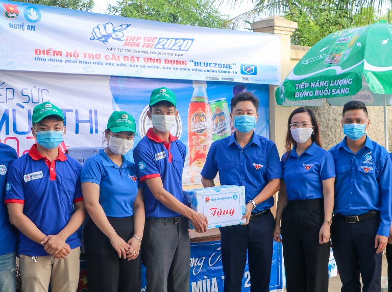 Kịp thời thực hiện các biện pháp tăng cường phòng chống dịch Covid-19 theo chỉ thị của UBND tỉnh Nghệ An, Tỉnh đoàn, Hội Sinh viên tỉnh đã chỉ đạo các huyện, thị, thành đoàn và các đoàn trường đại học, cao đẳng trực thuộc có tổ chức đội hình tiếp sức mùa thi đảm bảo các yếu tố an toàn. Ngoài các hoạt động quen thuộc như: trông giữ các đồ đạc không được mang vào phòng thi cho thí sinh, phát nước và sữa miễn phí cho thí sinh có nhu cầu, phân luồng giao thông trước cổng trường thi… 61 đội hình Tiếp sức mùa thi đã tích cực phối hợp với các lực lượng khác để hỗ trợ đo thân nhiệt thí sinh, đặt các bàn có chứa dung dịch rửa tay sát khuẩn, phát khẩu trang y tế cho các thí sinh chưa sử dụng đúng chủng loại. Bên cạnh đó, hưởng ứng kêu gọi toàn dân cài đặt ứng dụng “Bluezone” - ứng dụng hỗ trợ phòng chống dịch Covid-19 của Thủ tướng Chính phủ Nguyễn Xuân Phúc, các thanh niên tình nguyện cũng vận động, hướng dẫn các phụ huynh, người dân cài đặt và sử dụng.