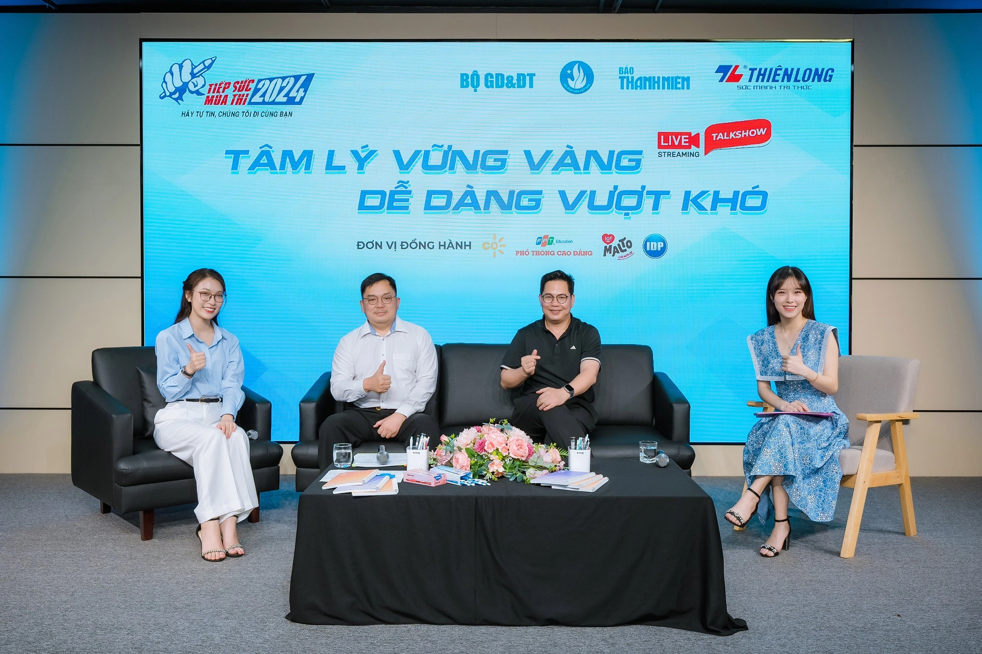 Ban tổ chức cho biết năm nay tiếp tục diễn ra chuỗi tư vấn tâm lý tại các điểm trường THPT "Vững tâm lý - Vượt mùa thi". Chương trình là một nội dung quan trọng để lan tỏa thông điệp "Thi cử nhẹ nhàng", giảm áp lực tâm lý cho thí sinh. Chương trình dự kiến tổ chức từ 5 - 19.5, tại 10 trường THPT của 5 tỉnh, thành phố trên toàn quốc.