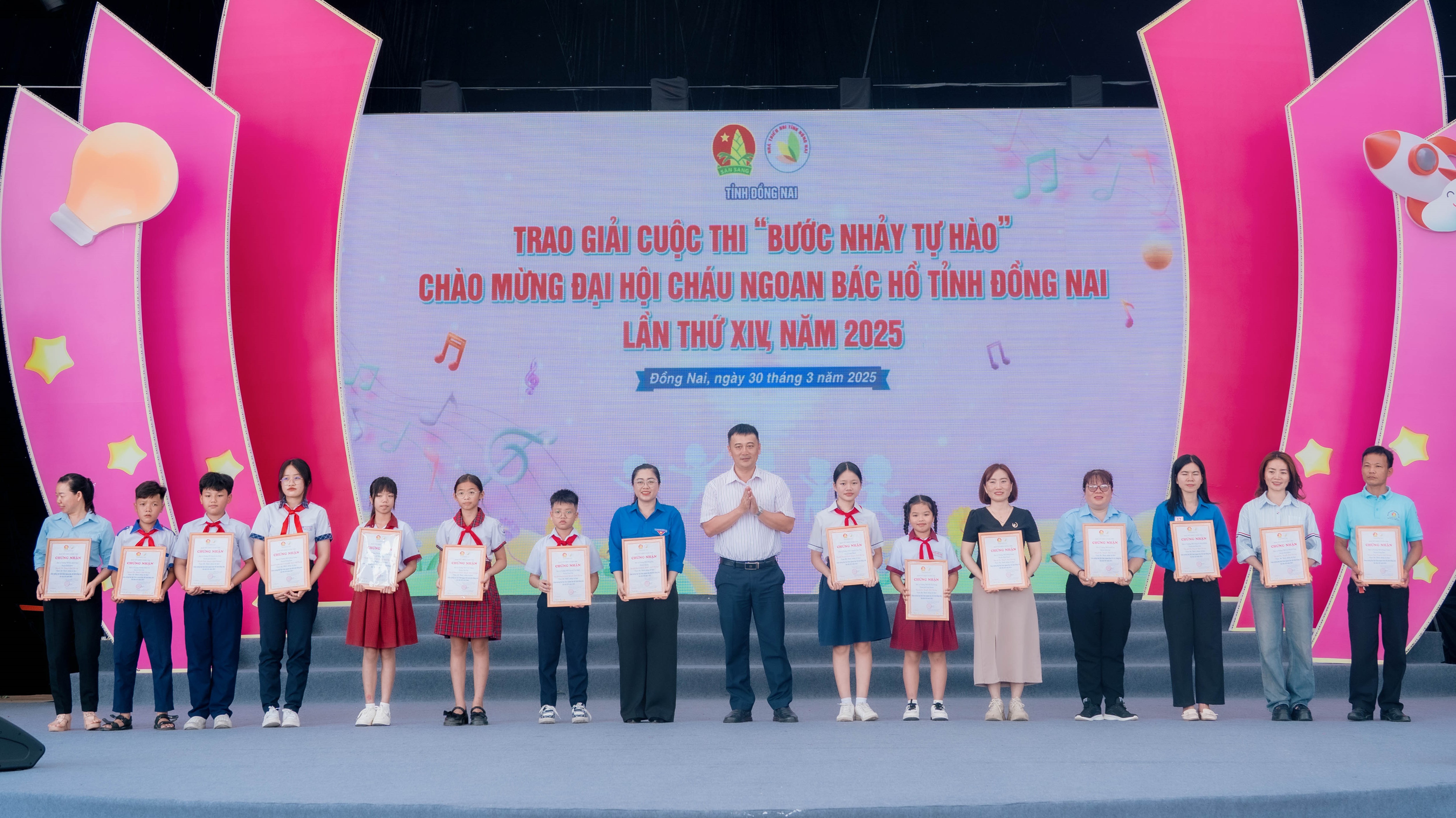 Bên cạnh đó, Ban Thường vụ Tỉnh đoàn cũng đã trao Bằng khen cho các tập thể, cá nhân có thành tích xuất sắc trong Cuộc thi Bước nhảy tự hào và Cuộc thi thiết kế sản phẩm truyền thông chào mừng Đại hội Cháu ngoan Bác Hồ tỉnh Đồng Nai làn thứ XIV, năm 2025.