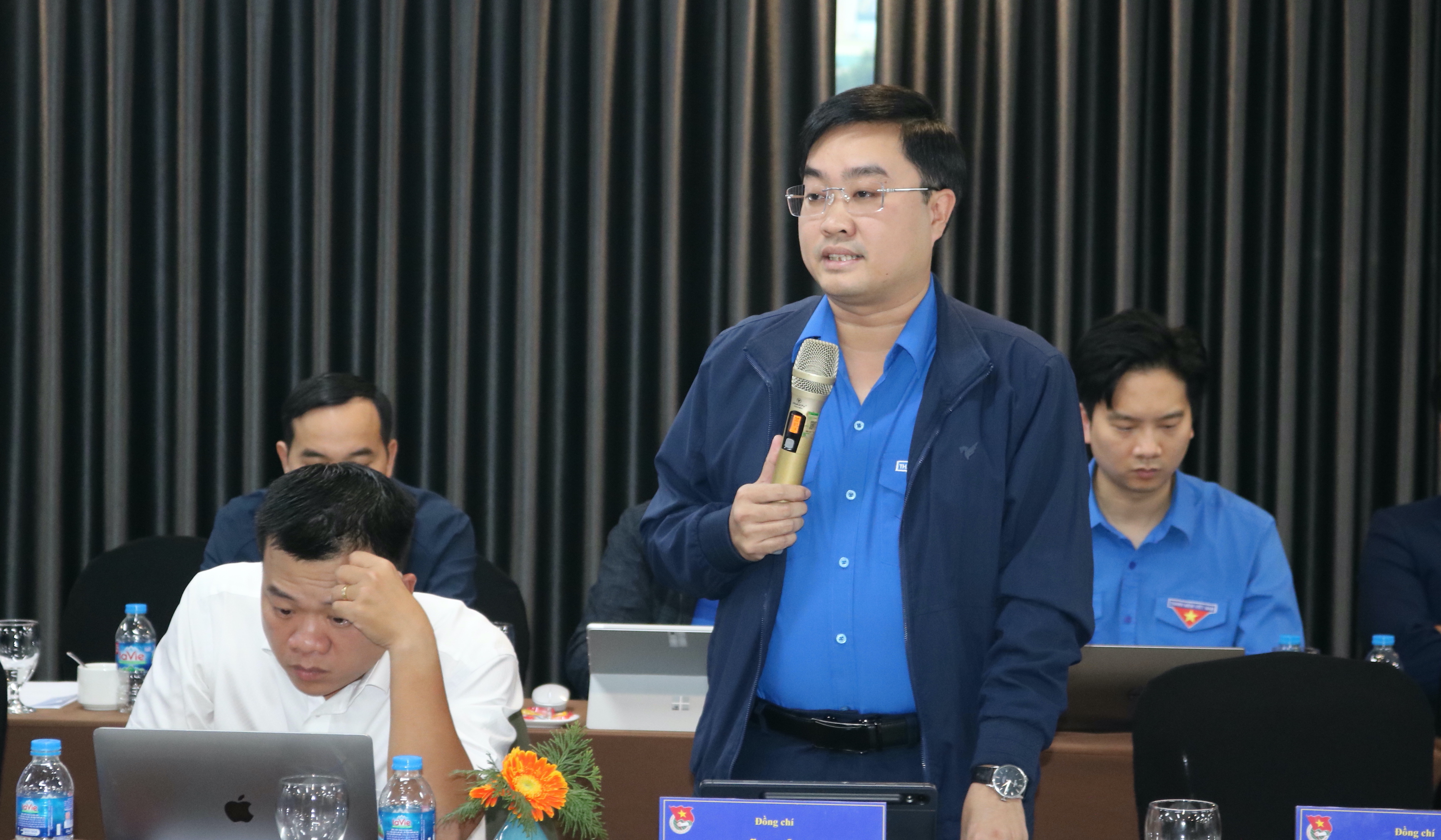 Đồng chí Cảnh Chí Quân, Phó Trưởng ban Thanh niên nông thôn Trung ương Đoàn, Uỷ viên Uỷ ban Kiểm tra Trung ương Đoàn phát biểu tại hội nghị