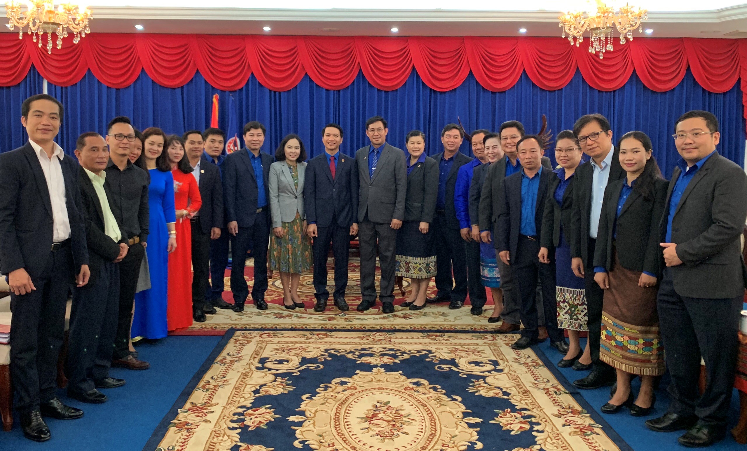 Đoàn đại biểu cấp cao Trung ương Đoàn TNCS Hồ Chí Minh chụp ảnh lưu niệm với Trung ương Đoàn Thanh niên Nhân dân Cách mạng Lào |