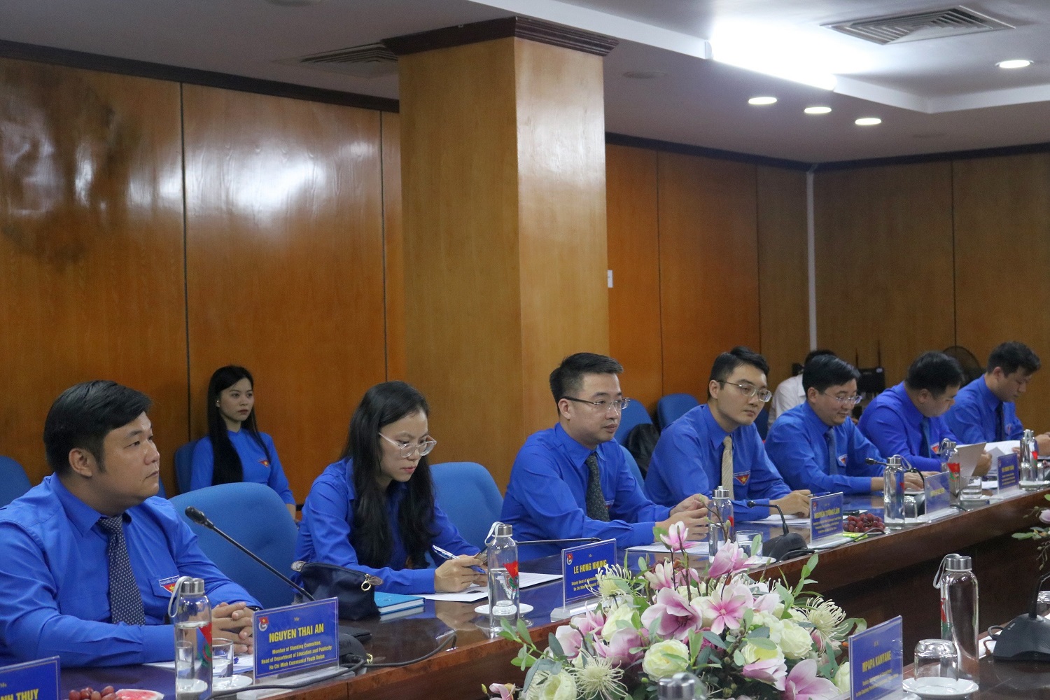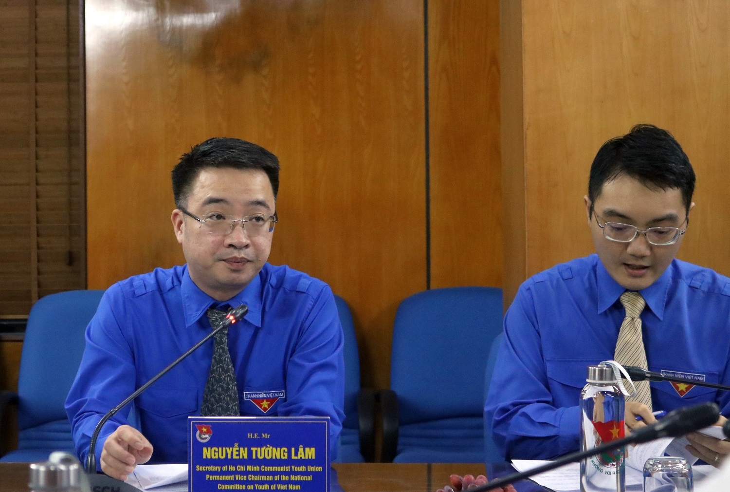 Đồng chí Nguyễn Tường Lâm, Bí thư Trung ương Đoàn, Phó Chủ nhiệm Thường trực UBQG về Thanh niên Việt Nam trao đổi tại buổi tiếp