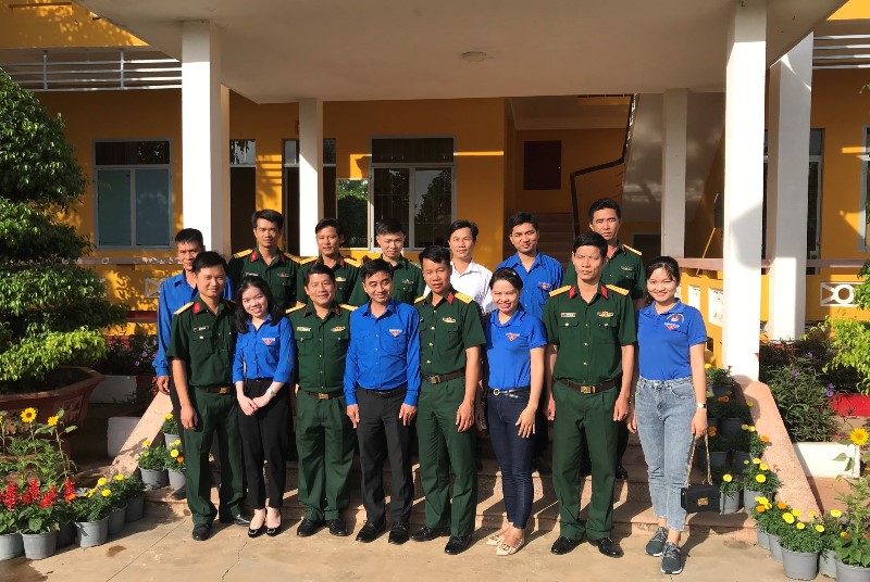 Cán bộ, chiến sĩ Tiểu đoàn 208/E736/Bộ Chỉ huy Quân sự tỉnh chụp hình lưu niệm cùng đoàn |