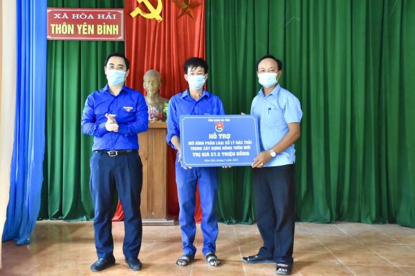 Tại chương trình, đồng chí Lê Thành Đông, Bí thư Tỉnh đoàn, Chủ tịch Hội LHTN Việt Nam tỉnh đã trao biển tượng trưng hỗ trợ mô hình phân loại xử lý rác thải trong xây dựng nông thôn mới trị giá 57,5 triệu đồng cho Ban Chỉ đạo Nông thôn mới và Đội tuyên tuyên truyền viên Bảo vệ môi trường xã Hòa Hải.