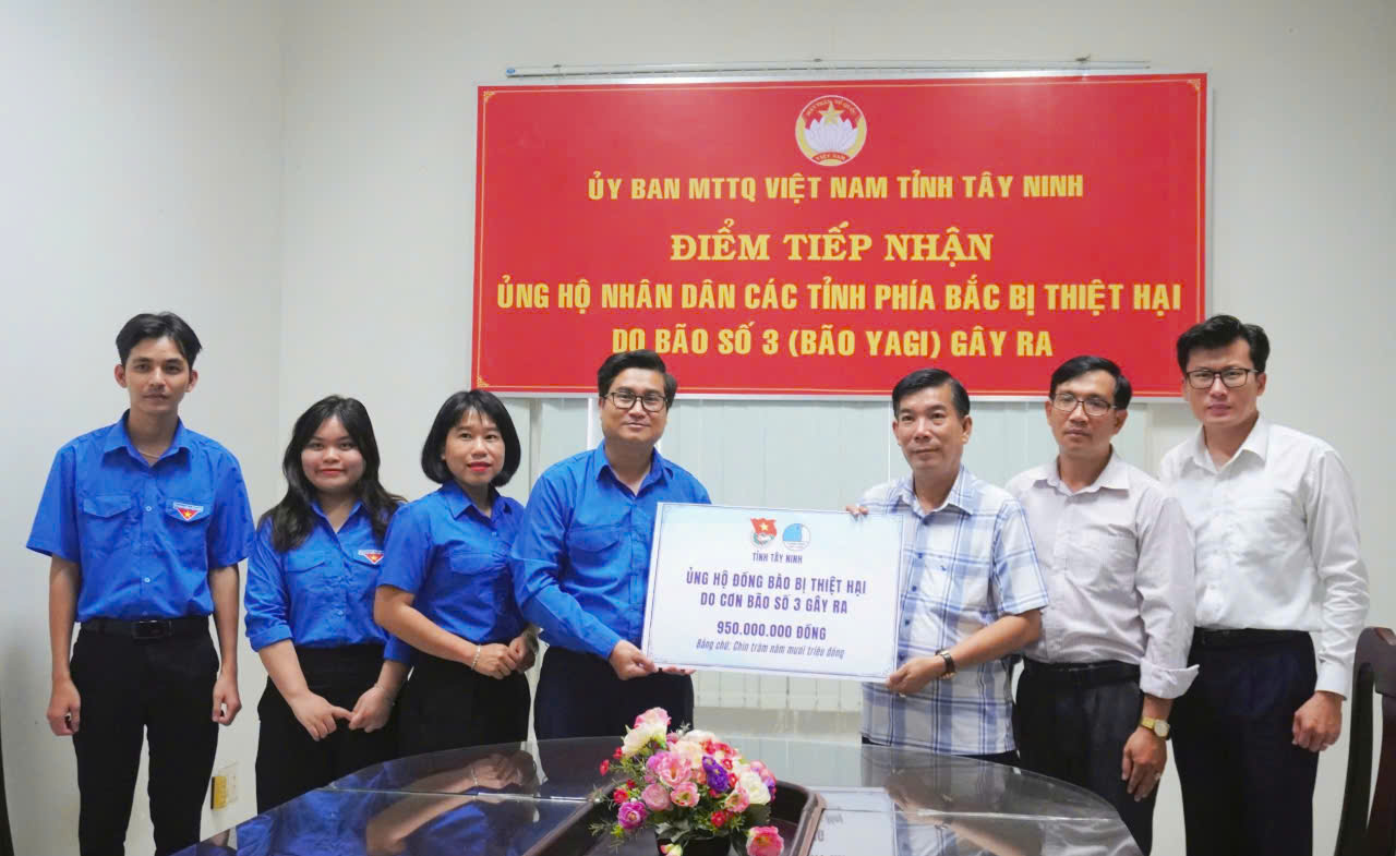 Trước đó, ngày 11/9, Ban Thường vụ Tỉnh đoàn, Ban Thư ký Uỷ Ban Hội LHTN Việt Nam tỉnh đã tổ chức chương trình phát động kêu gọi toàn thể cán bộ, đoàn viên, thanh niên, thiếu niên và nhi đồng toàn tỉnh ủng hộ nhân dân vùng thiệt hại do bão lũ. Tính đến ngày 13/9, Tỉnh đoàn Tây Ninh đã nhận được 950 triệu đồng từ các đoàn viên, thanh niên và người dân trên địa bàn ủng hộ bằng hình thức chuyển khoản và tiền mặt.